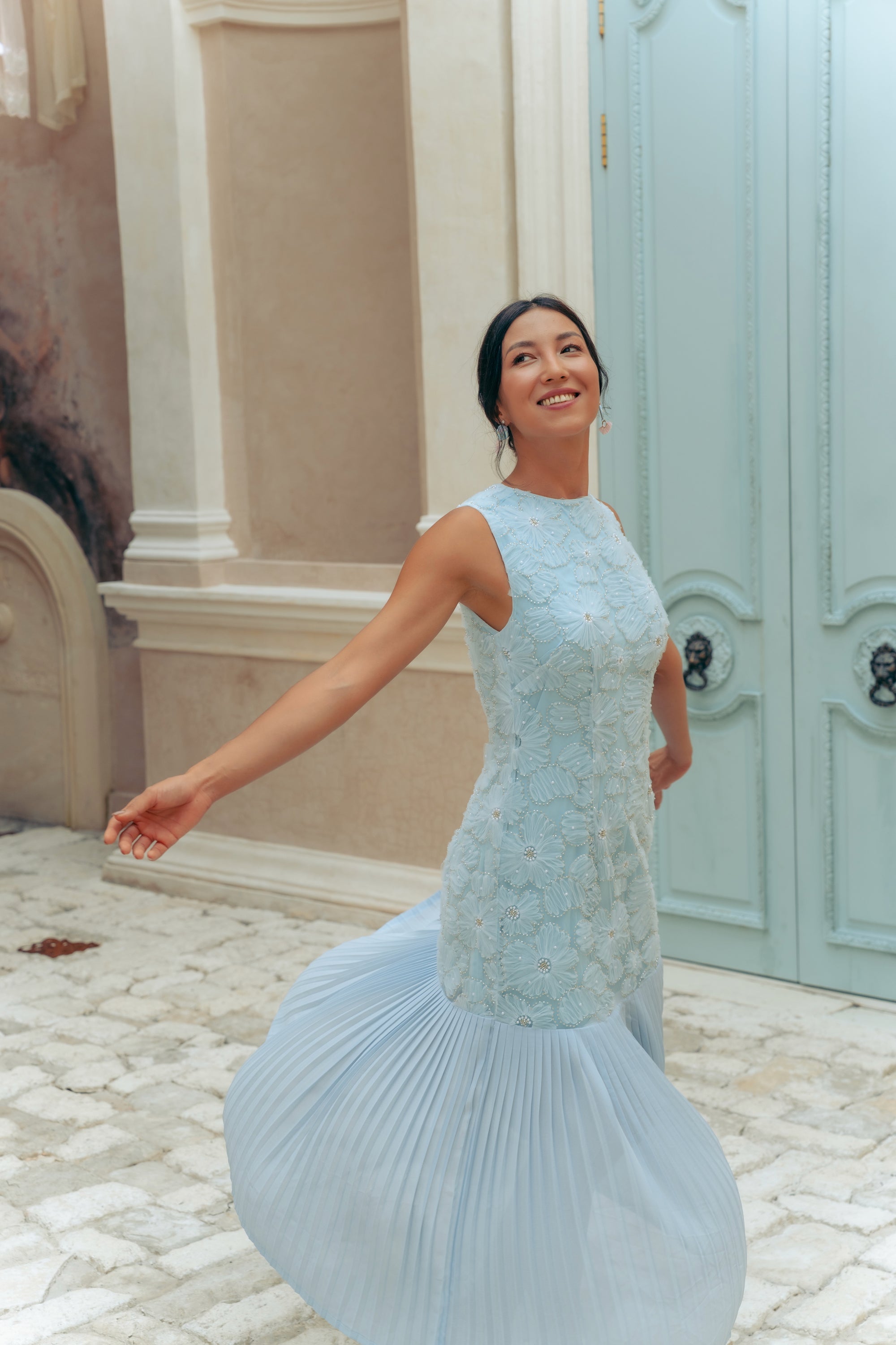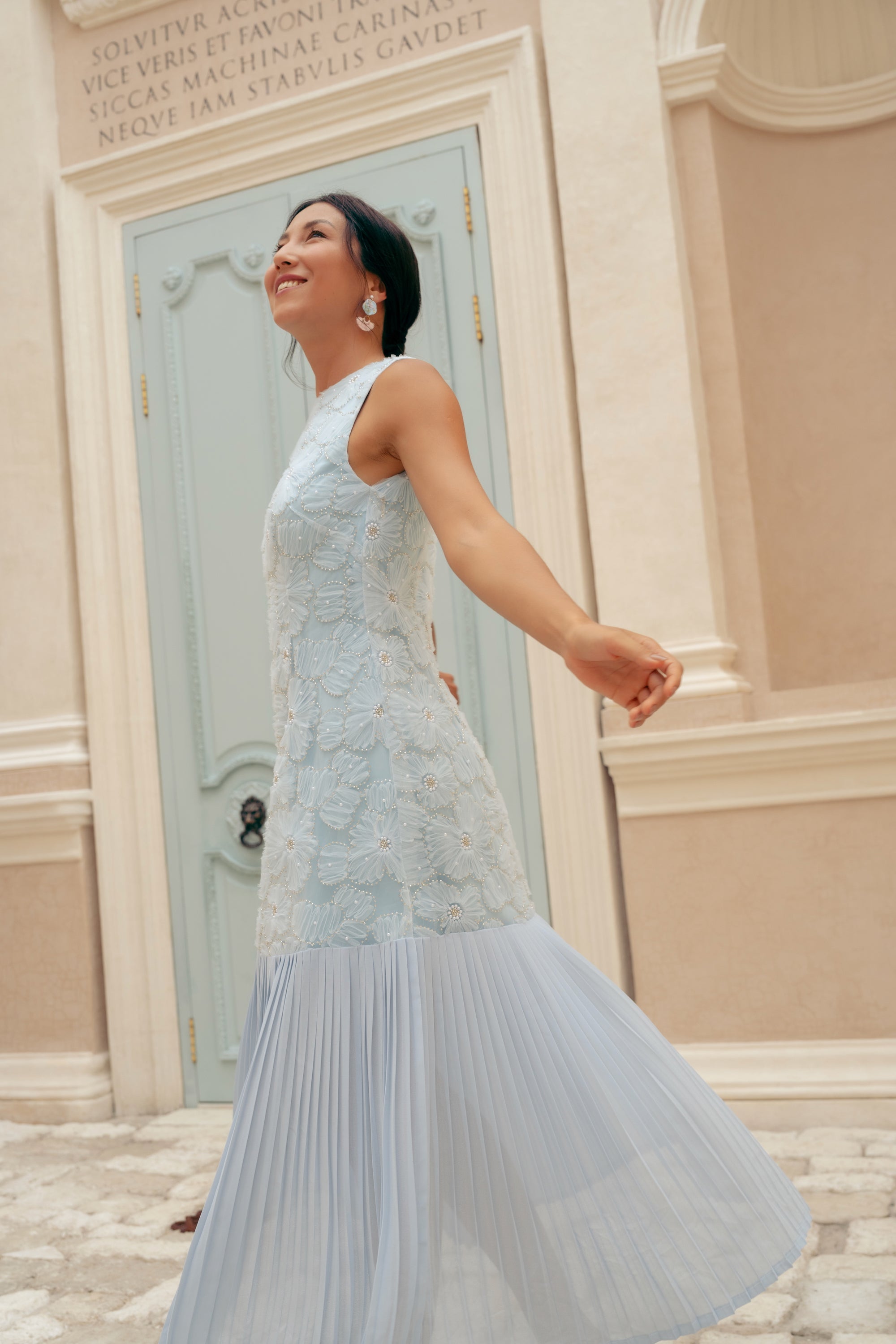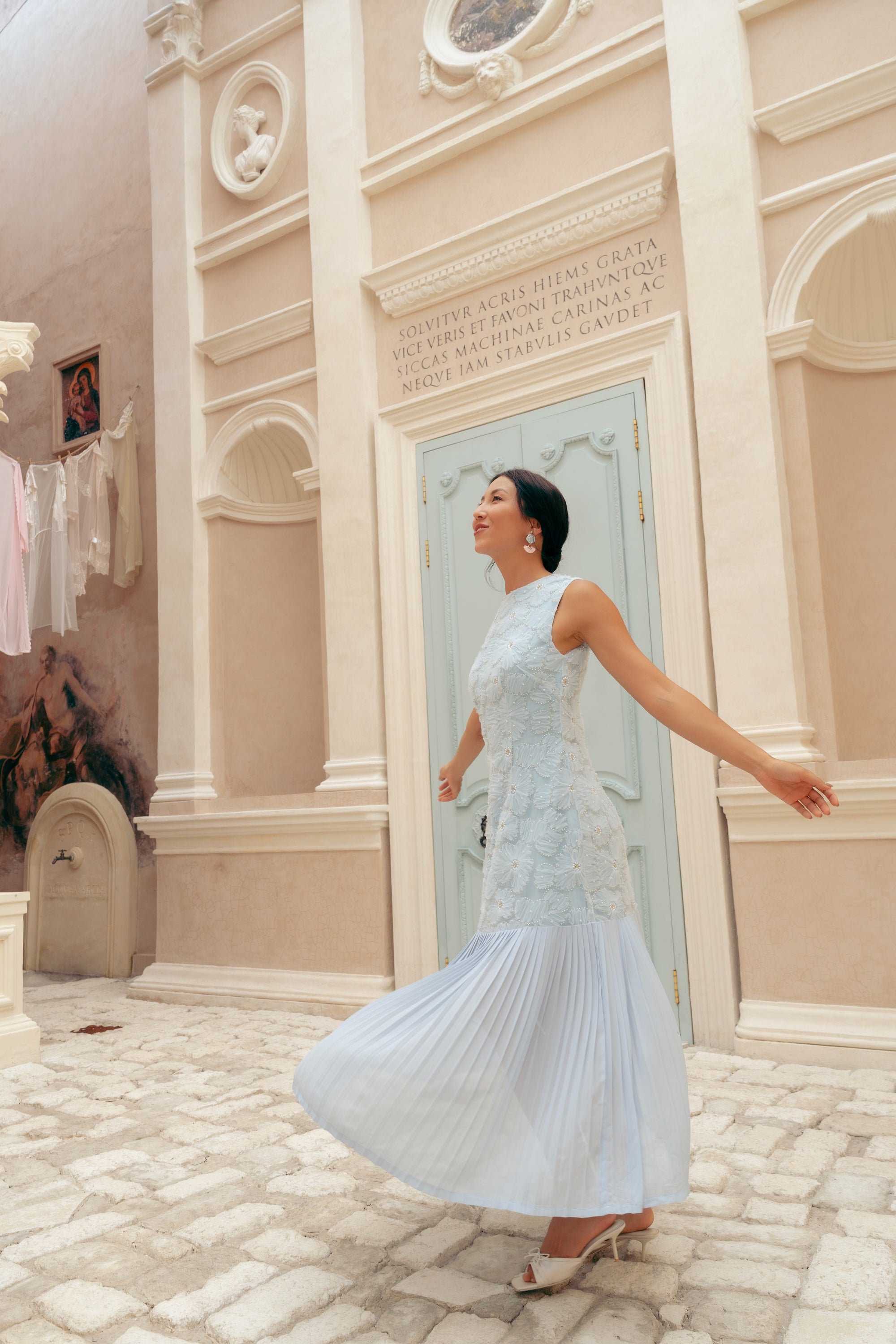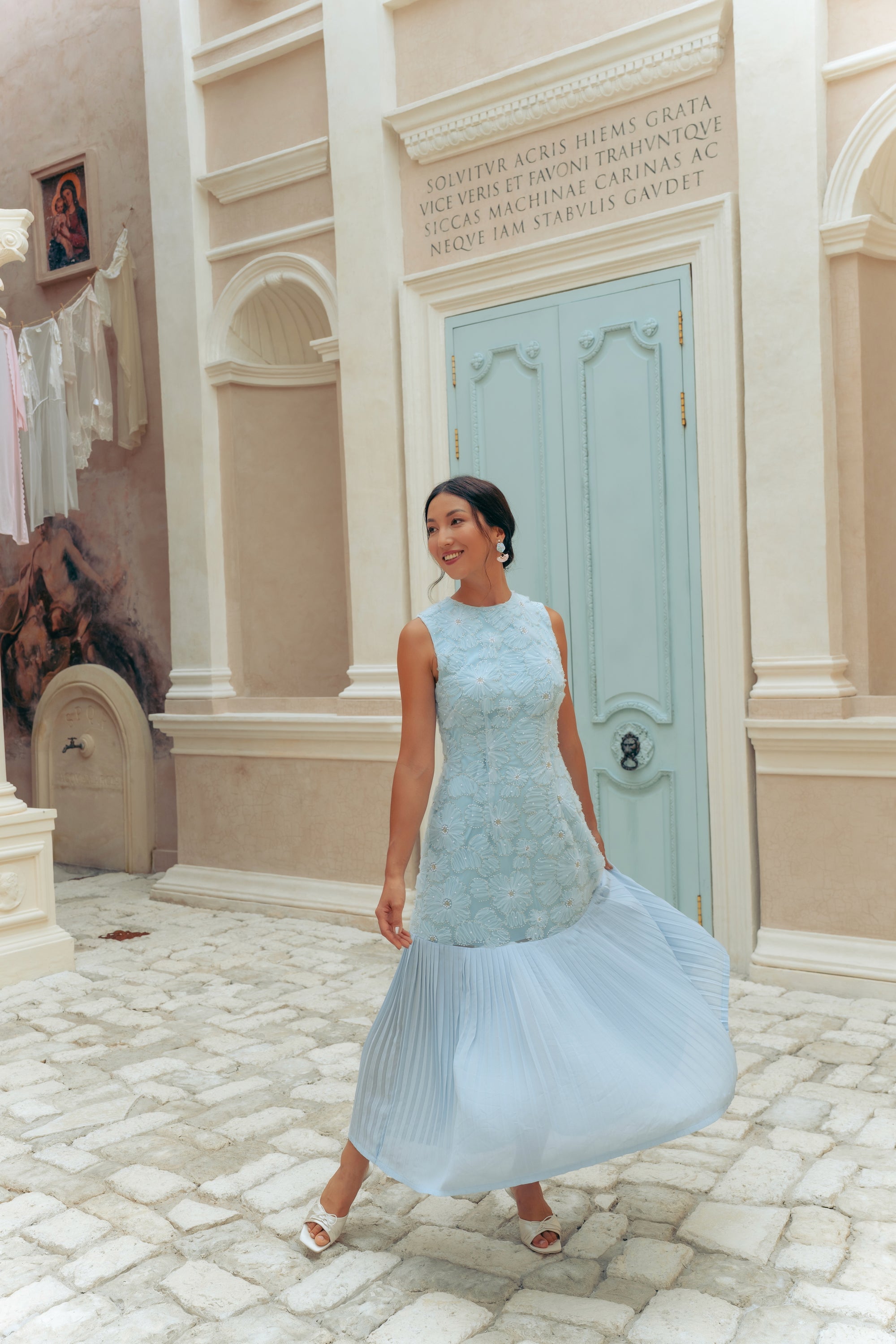 Levia Drop Waisted Maxi Dress - Baby Blue / Blush Pink