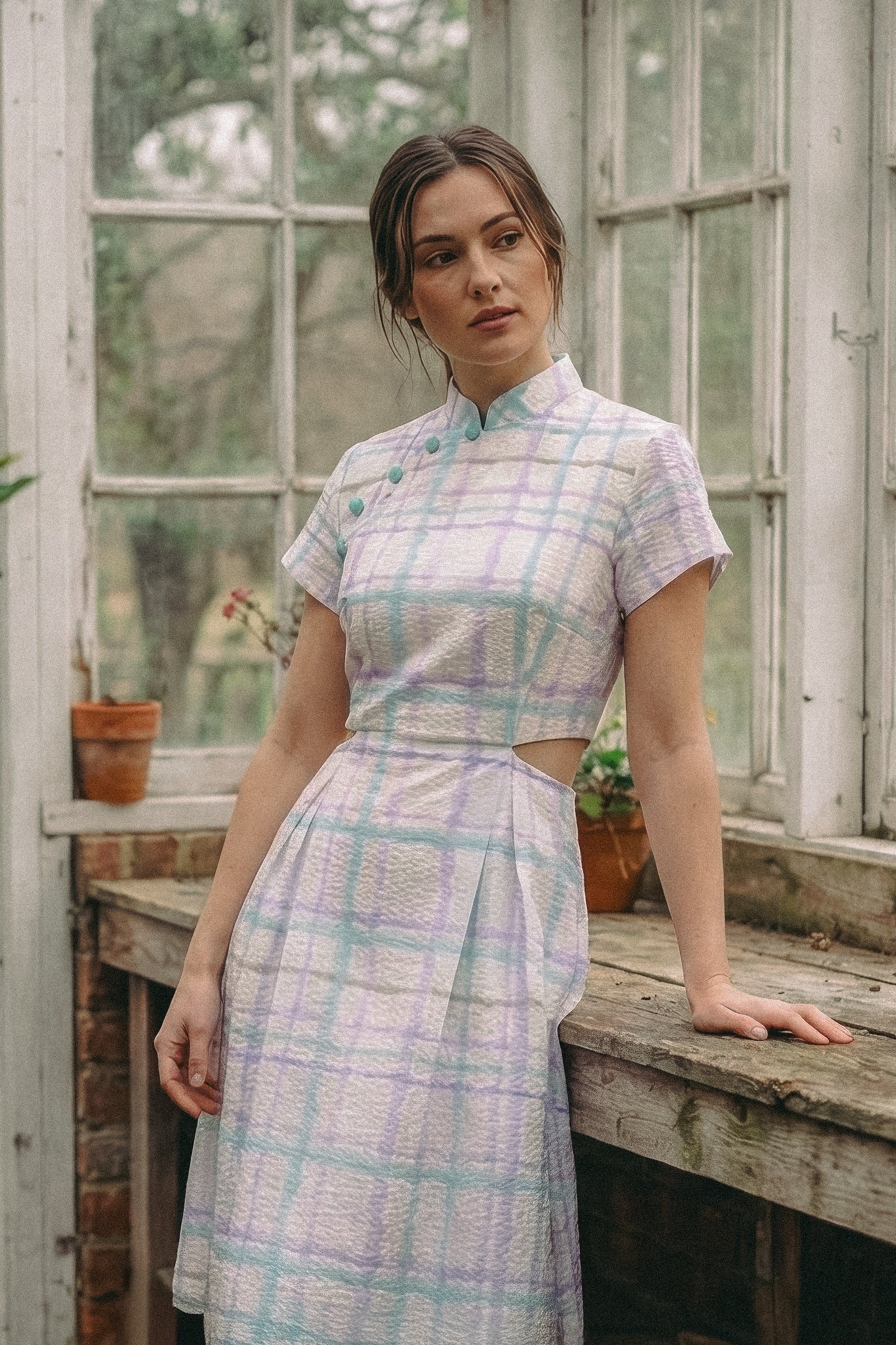 Signature Cut-Out Midi Cheongsam with Sleeves - Provence
