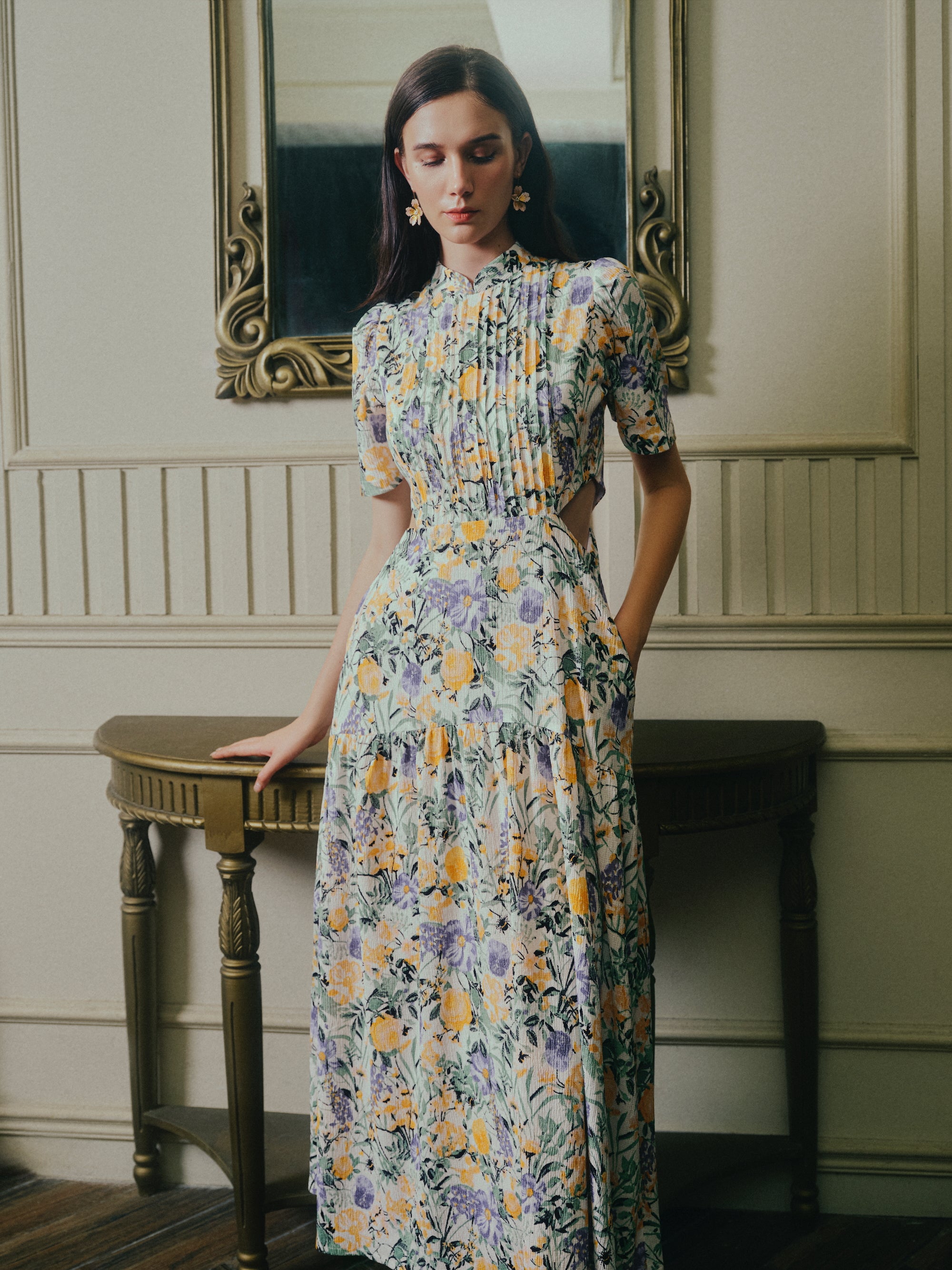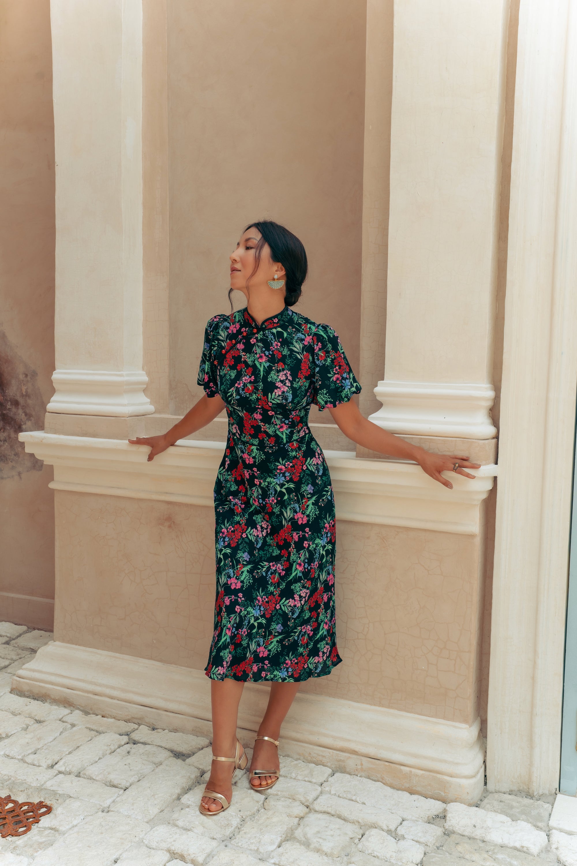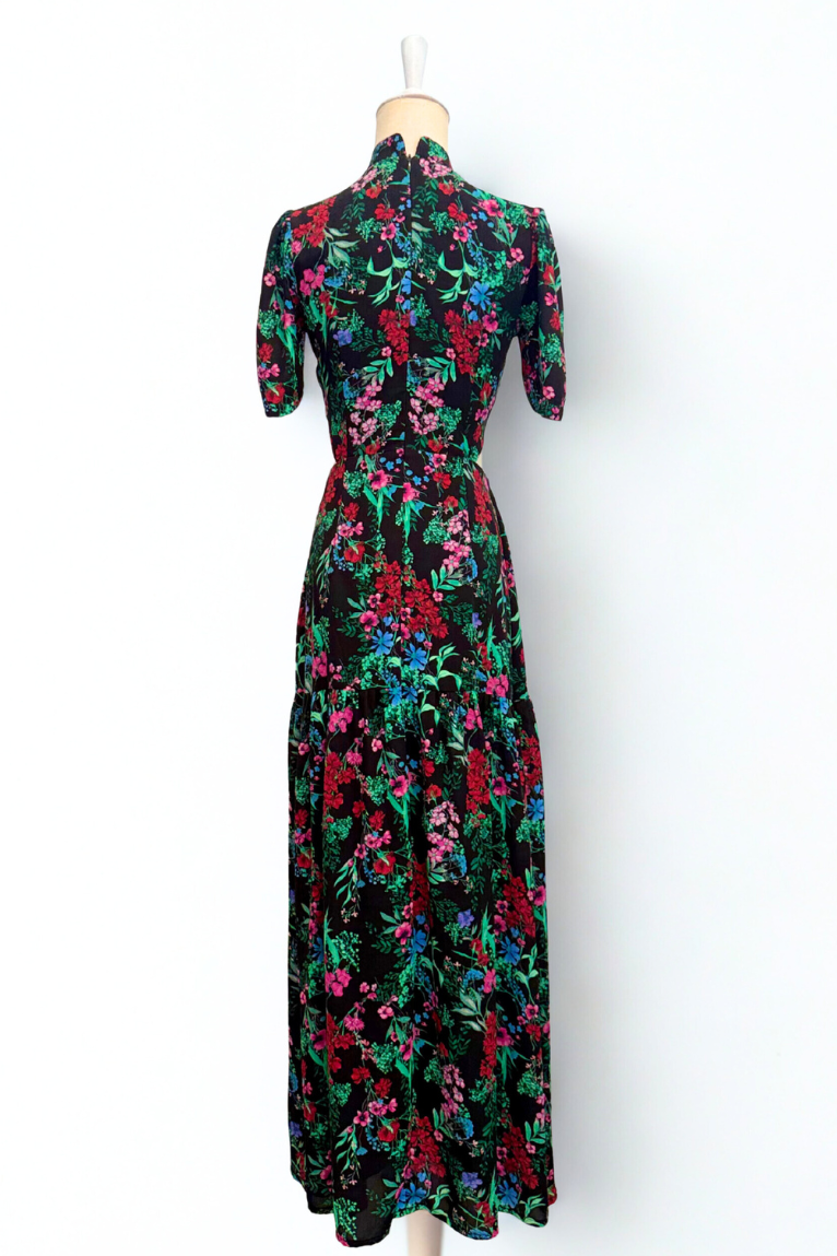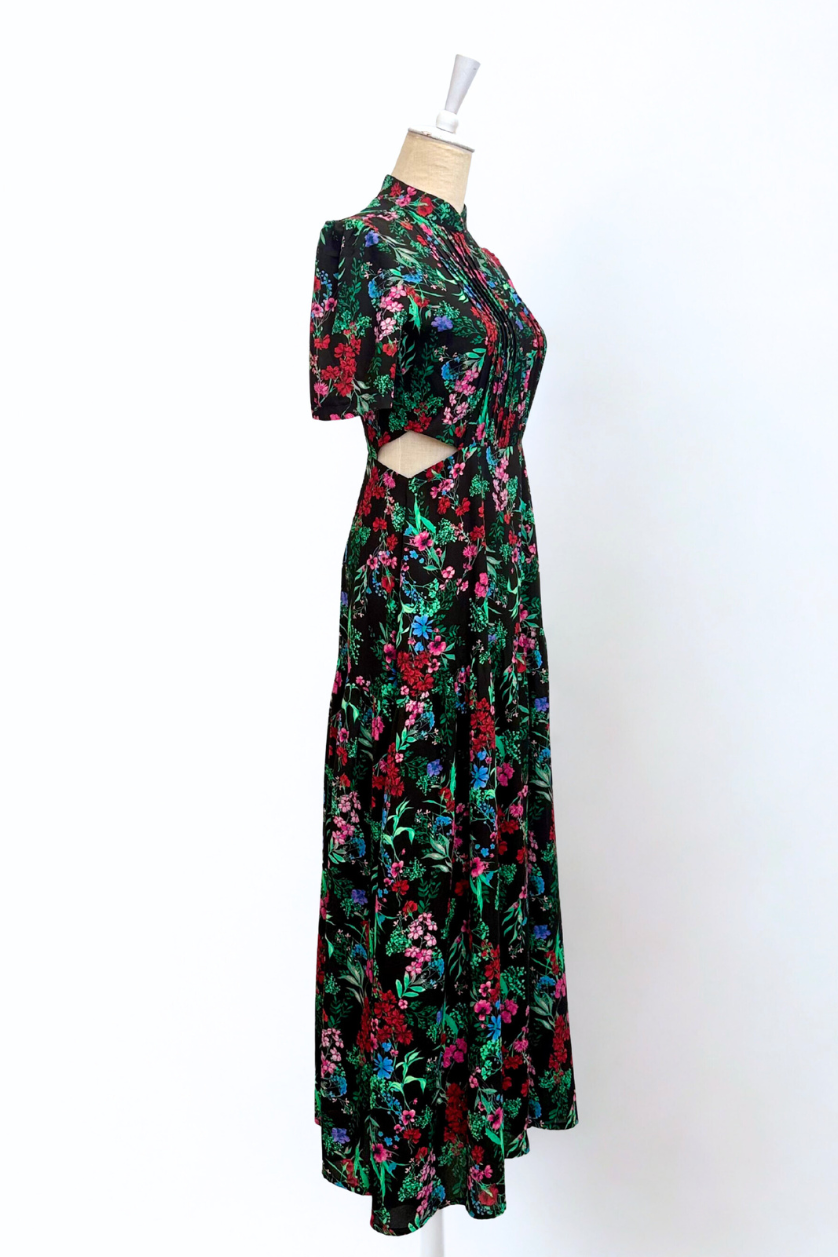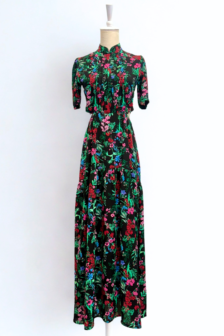 Gigi Pleated Maxi Cheongsam - Moonlit Floral