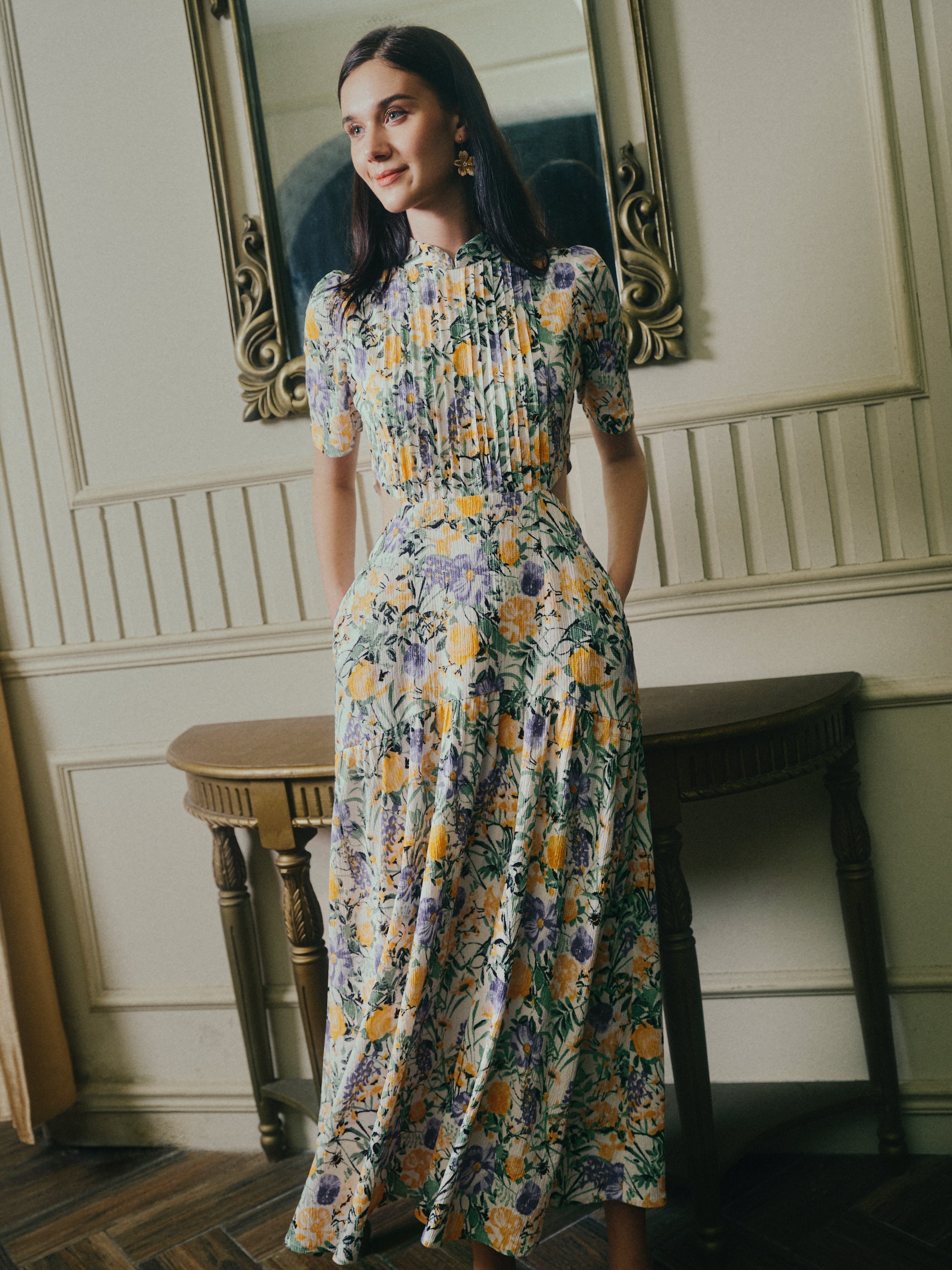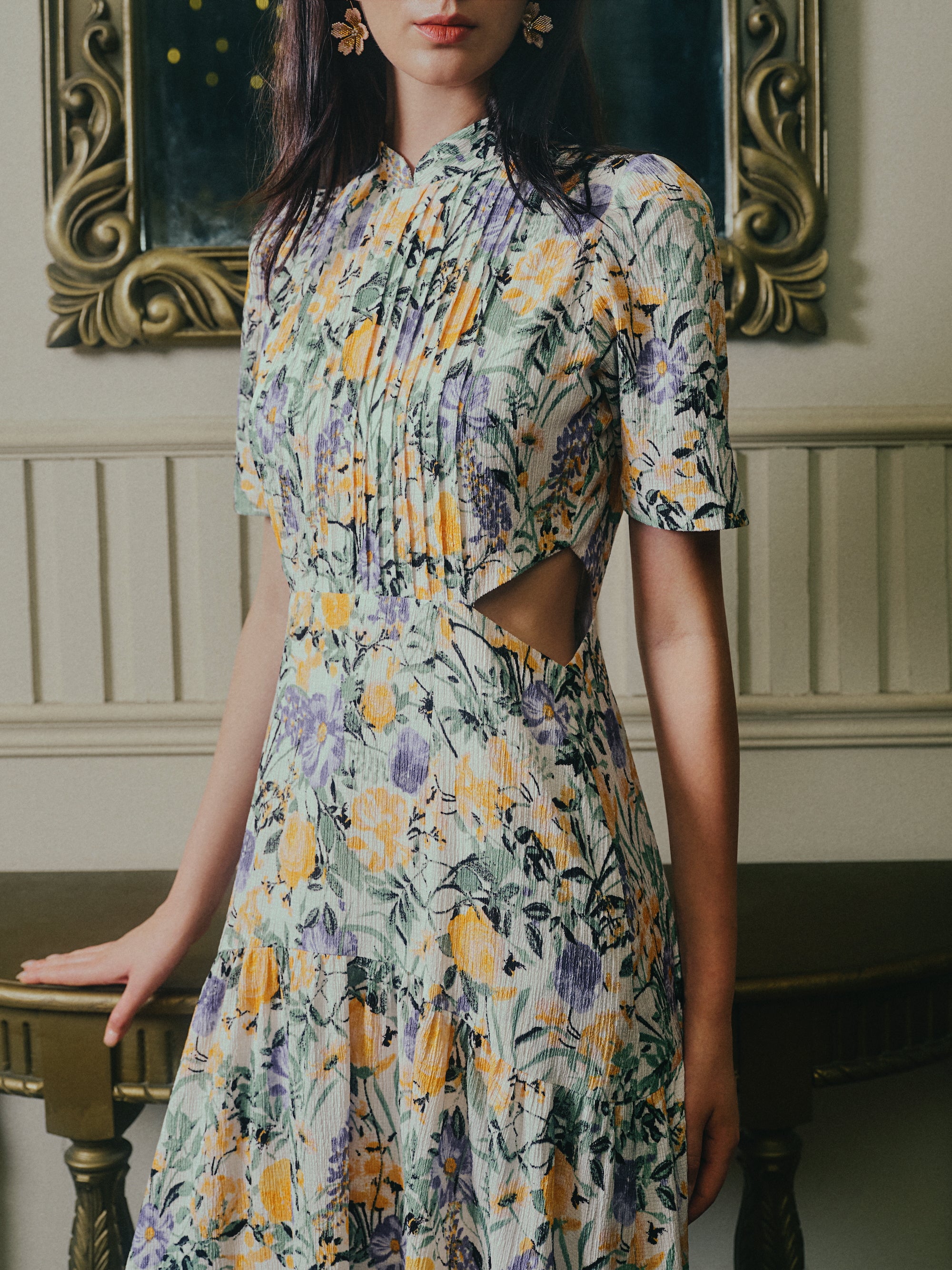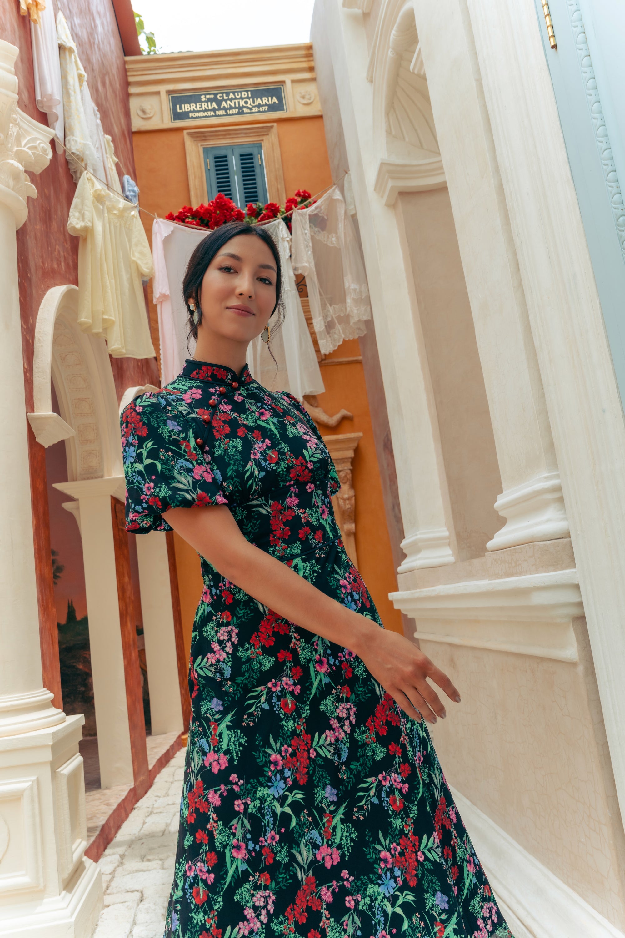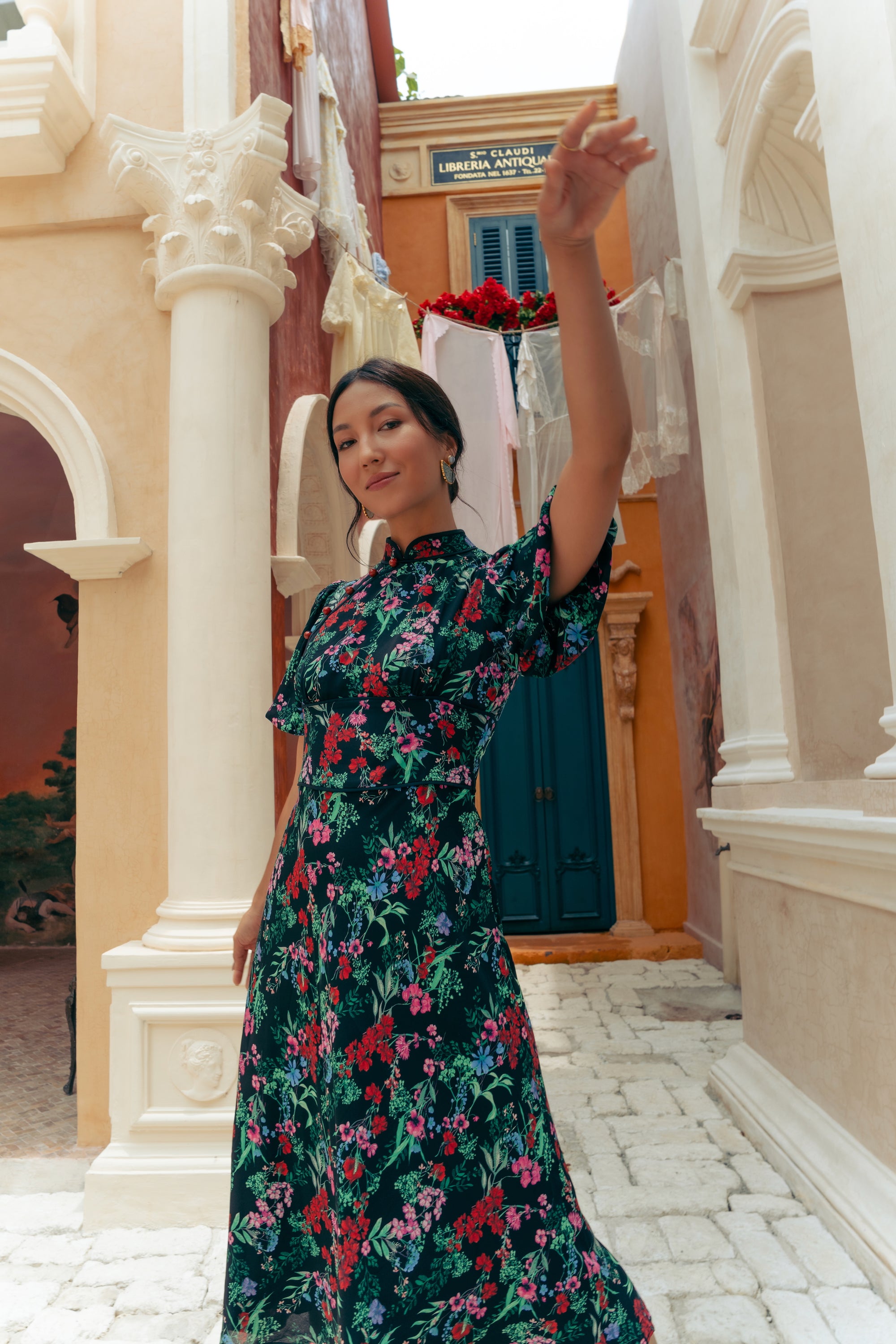 Gigi Pleated Maxi Cheongsam - Moonlit Floral