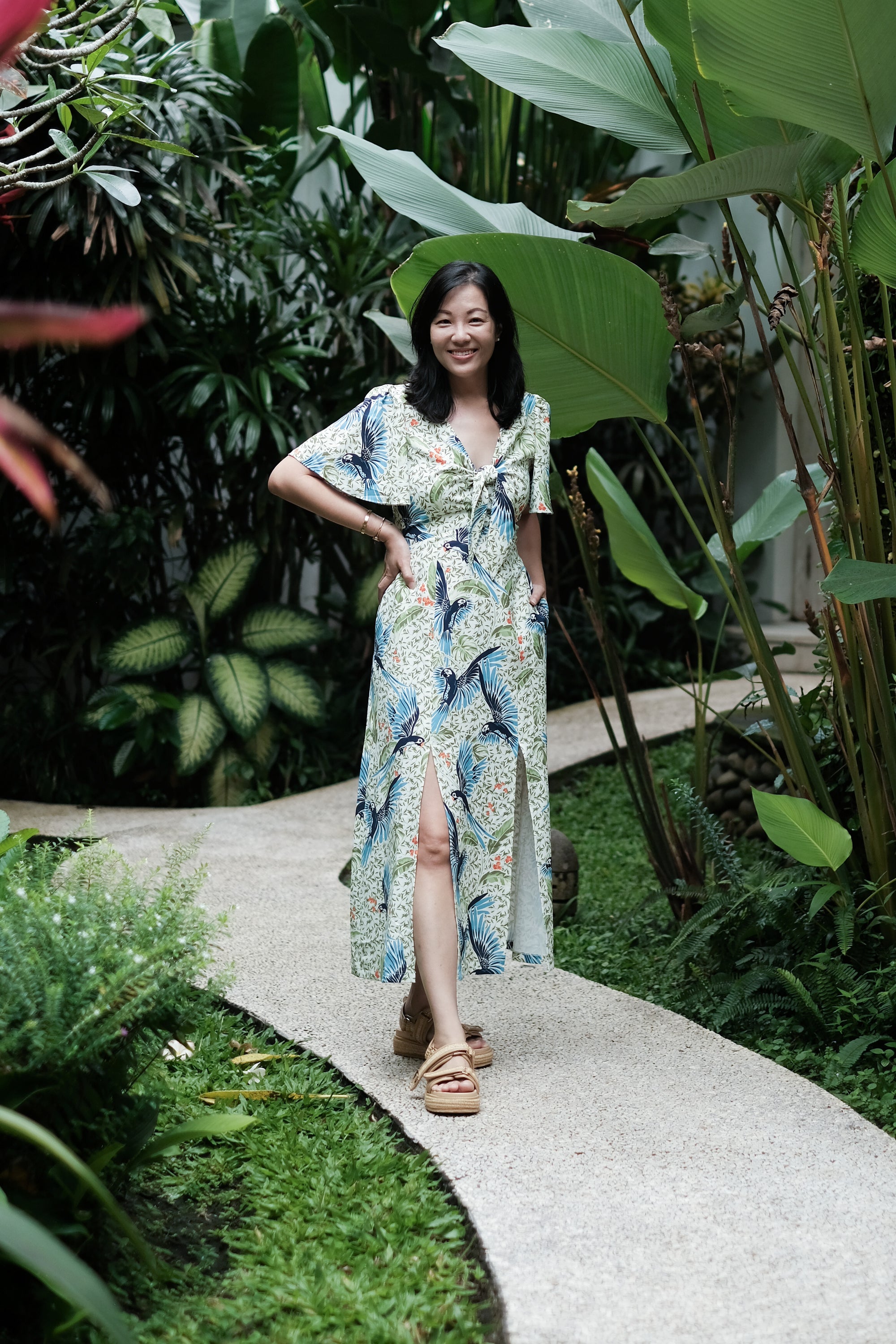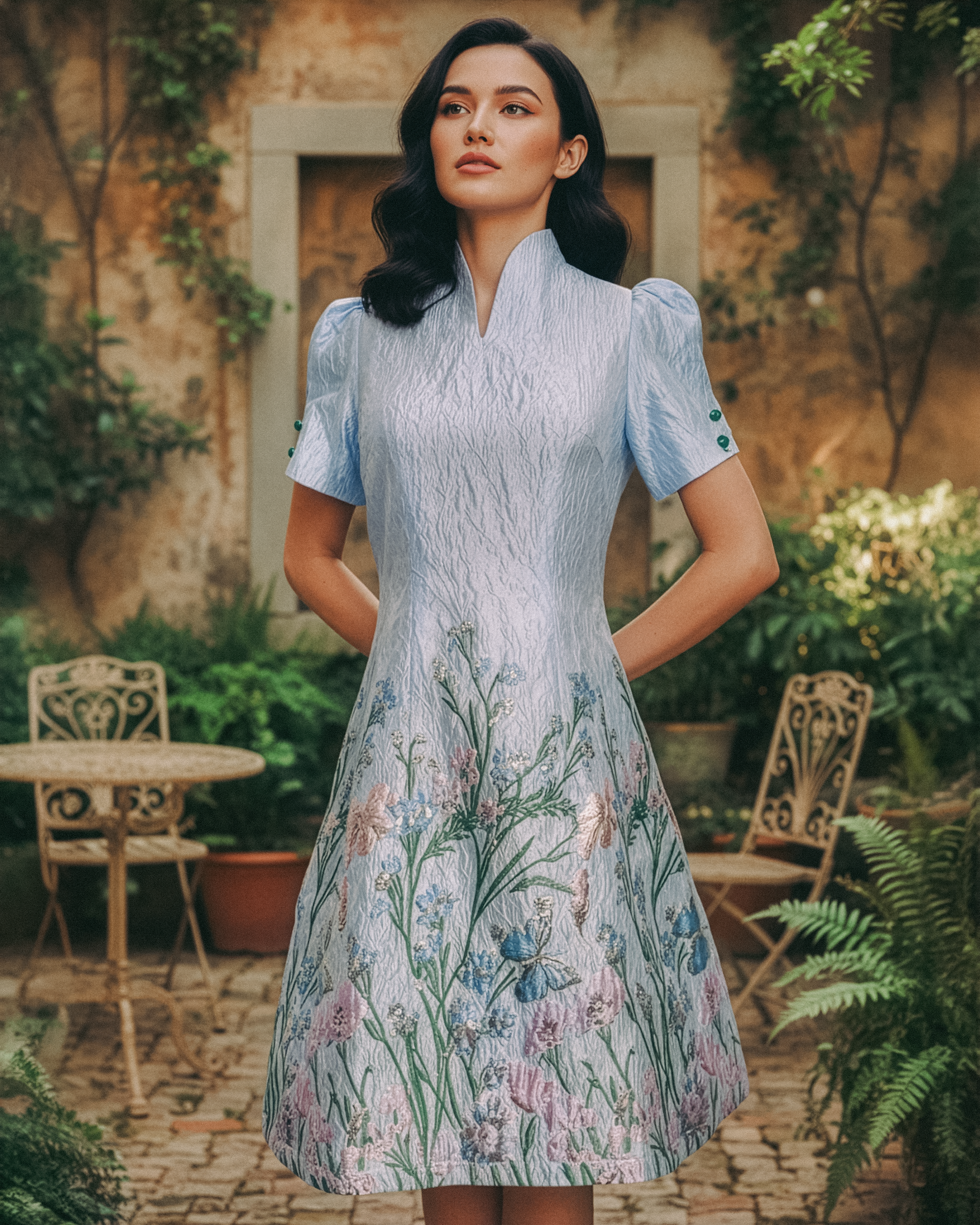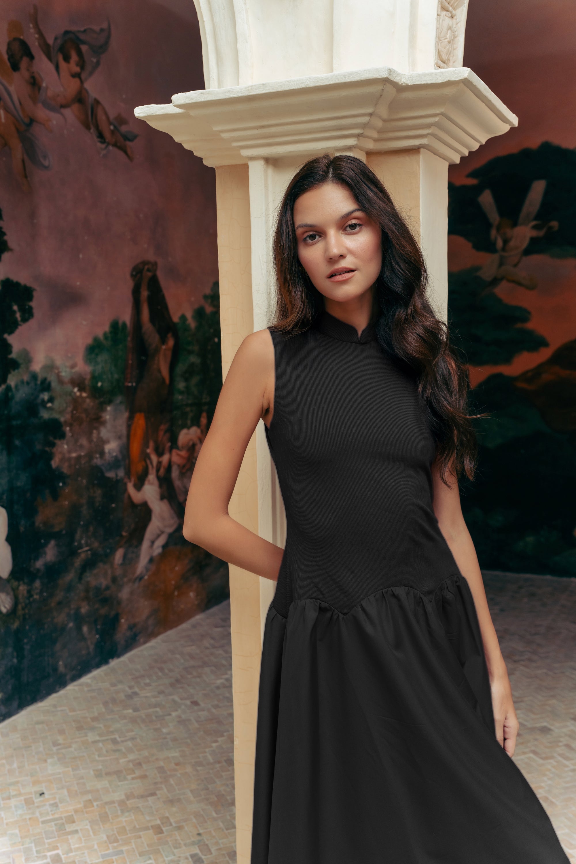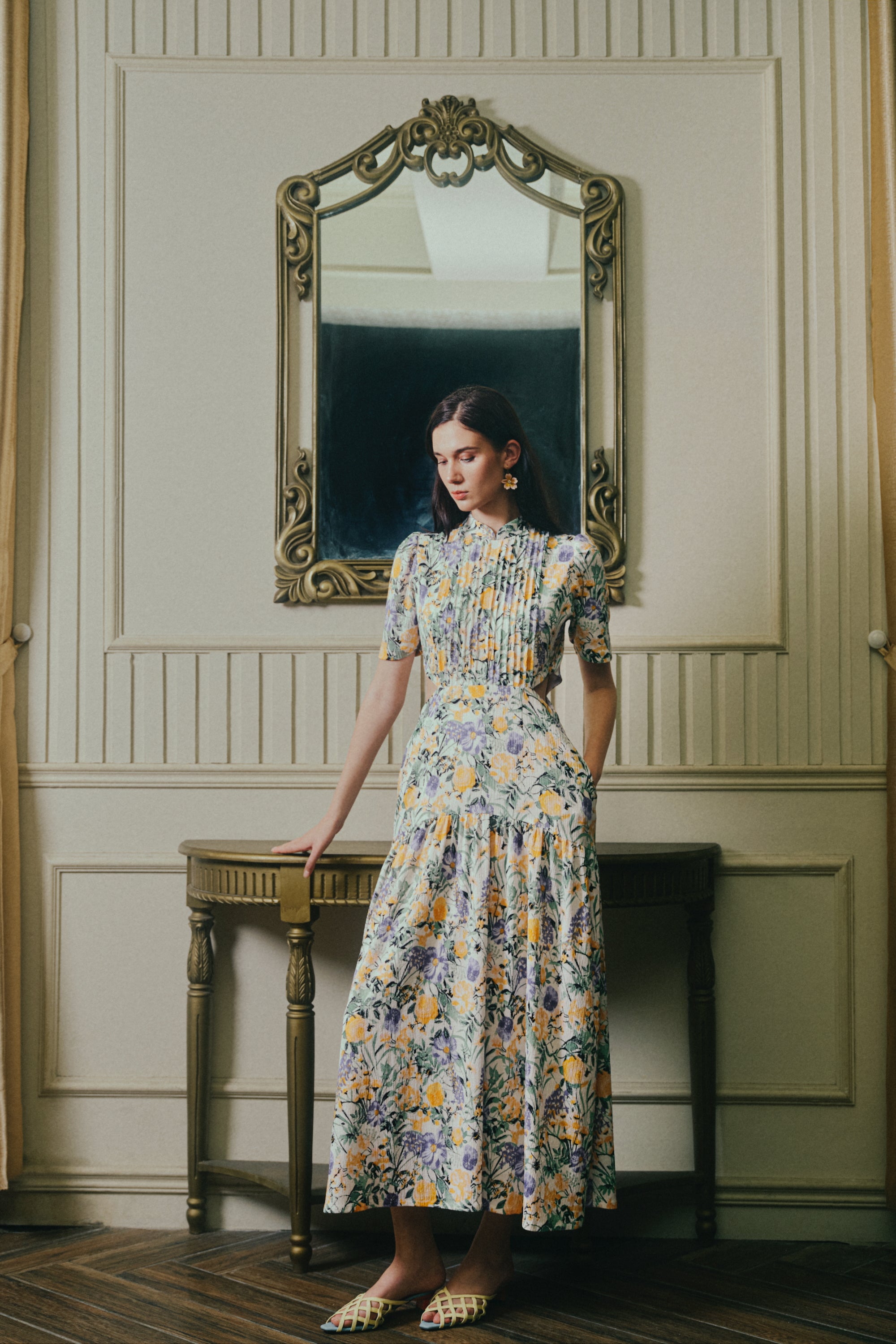 Gigi Pleated Maxi Cheongsam - Moonlit Floral