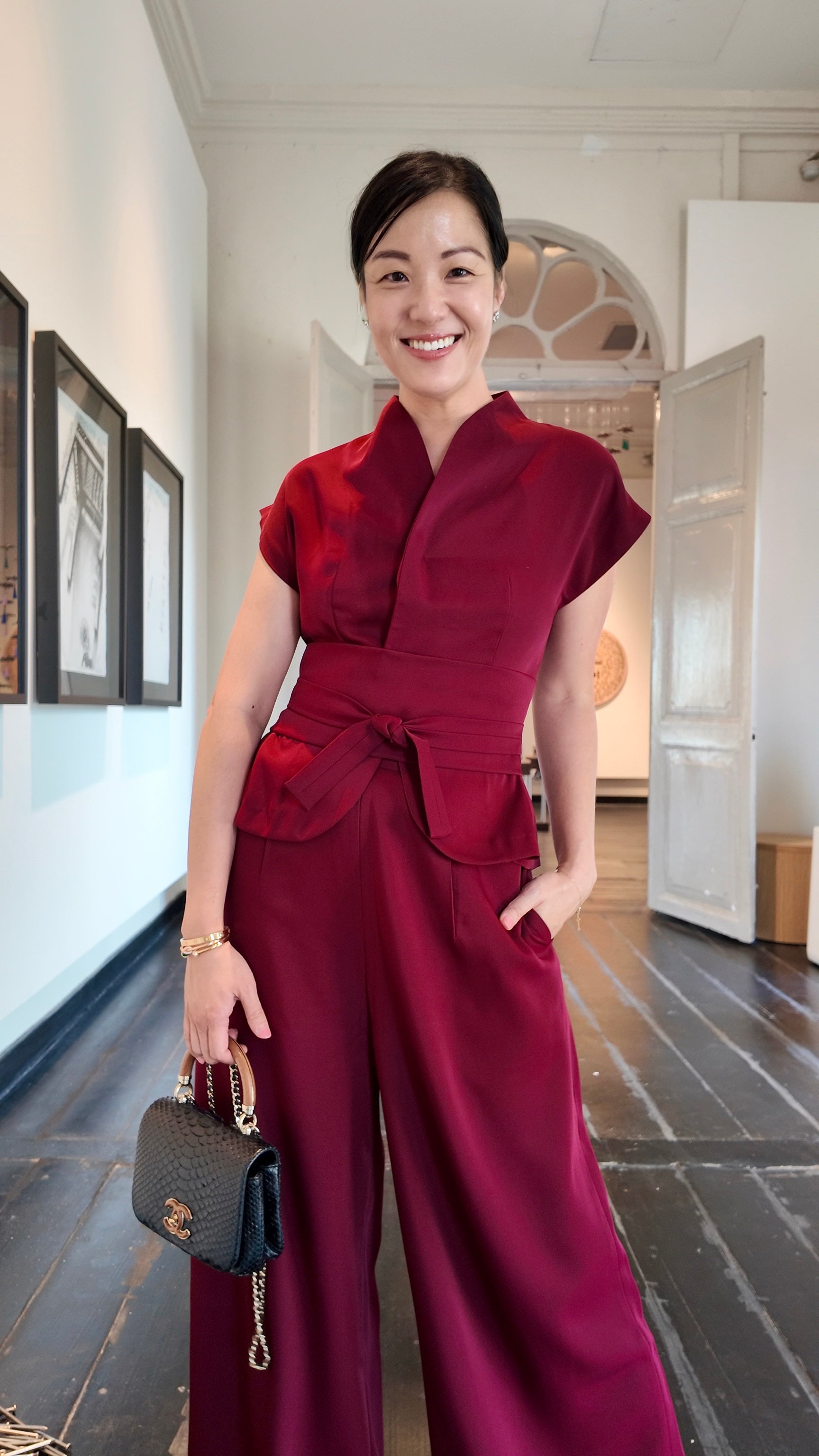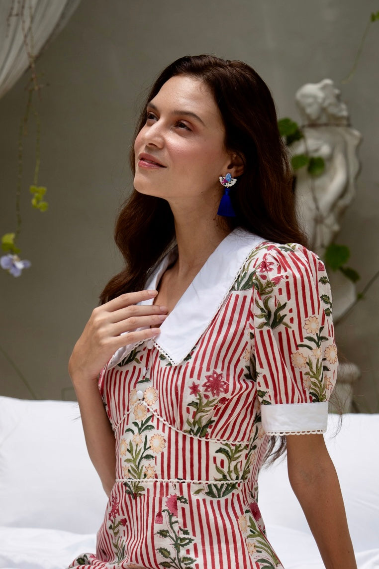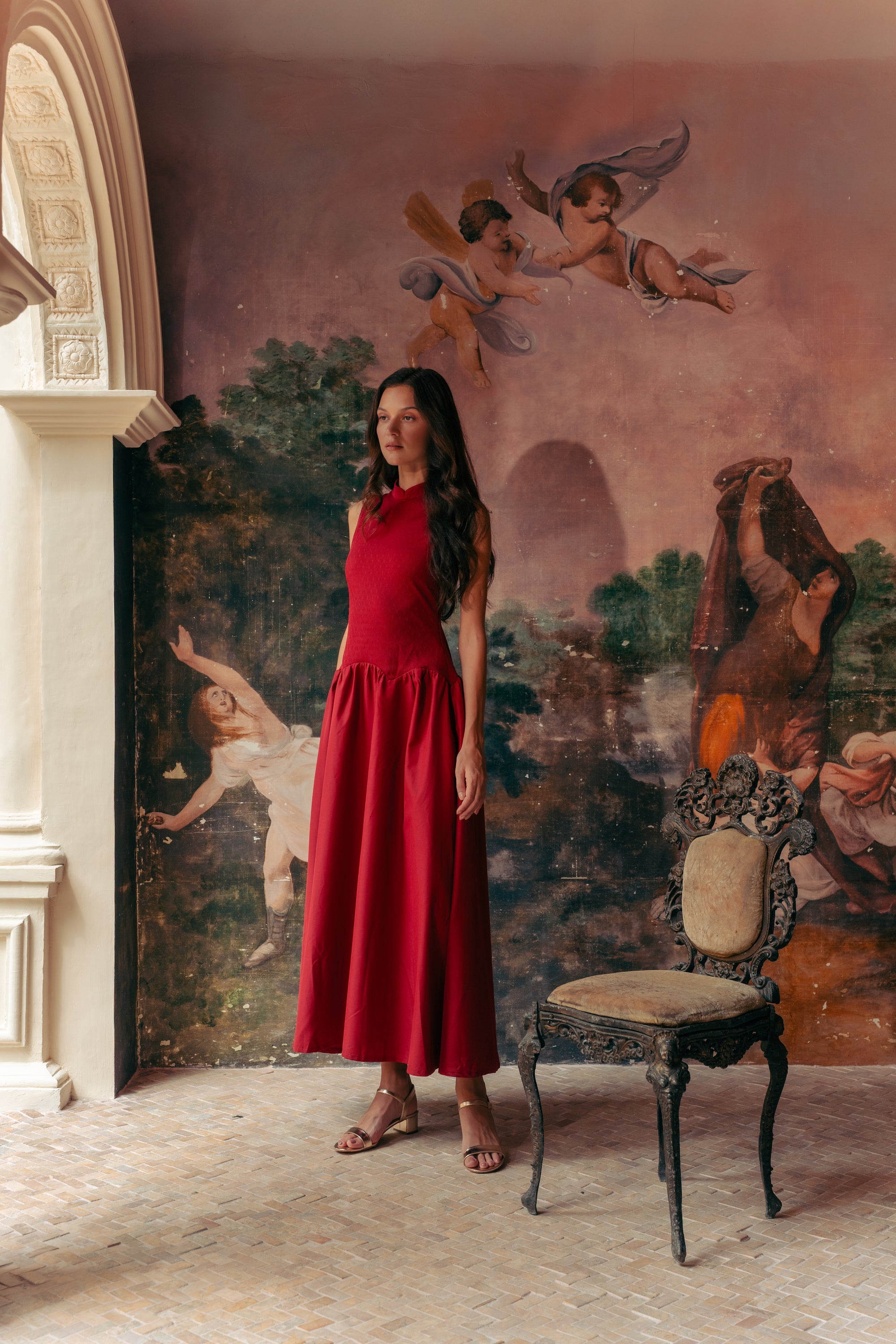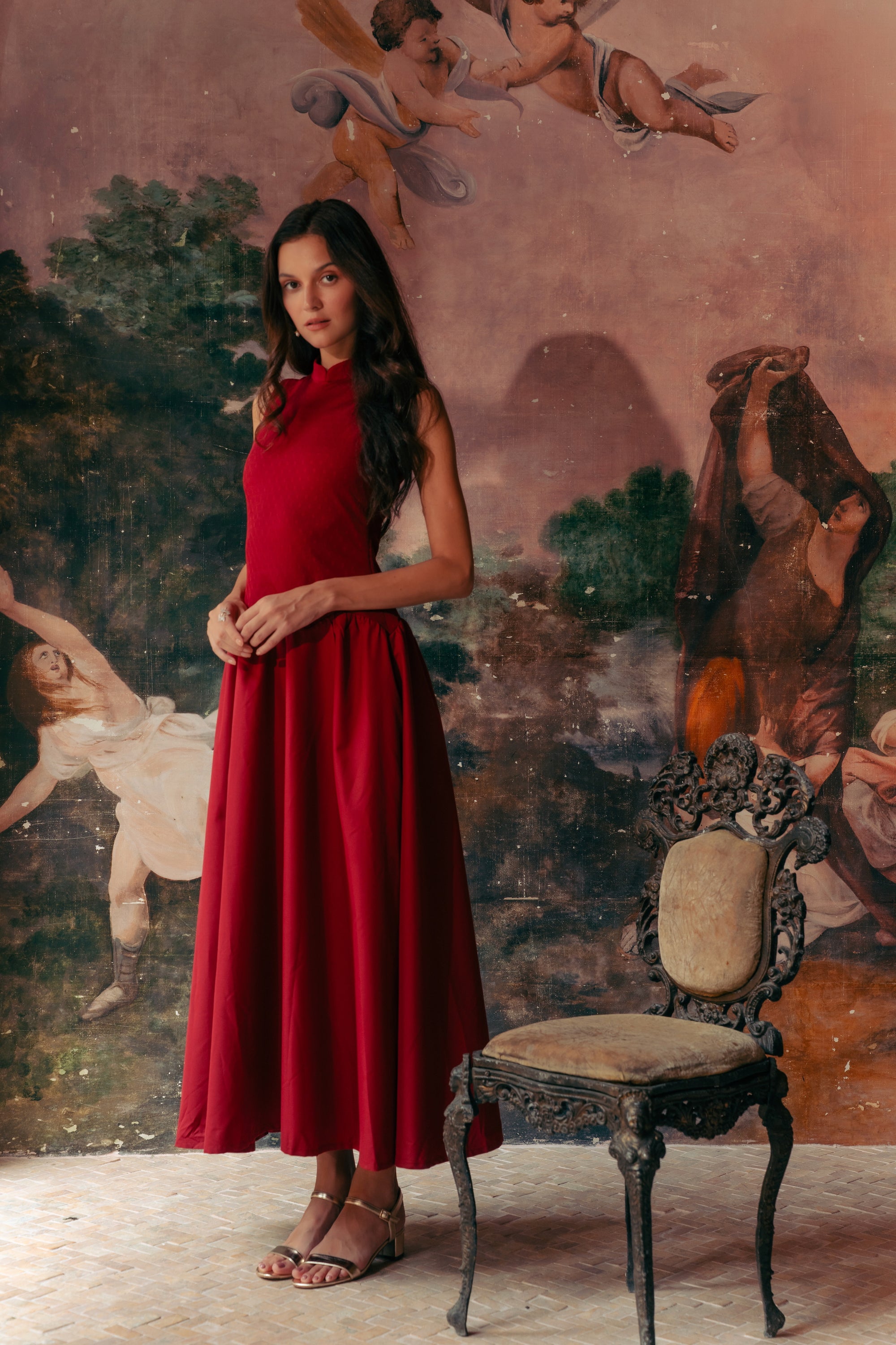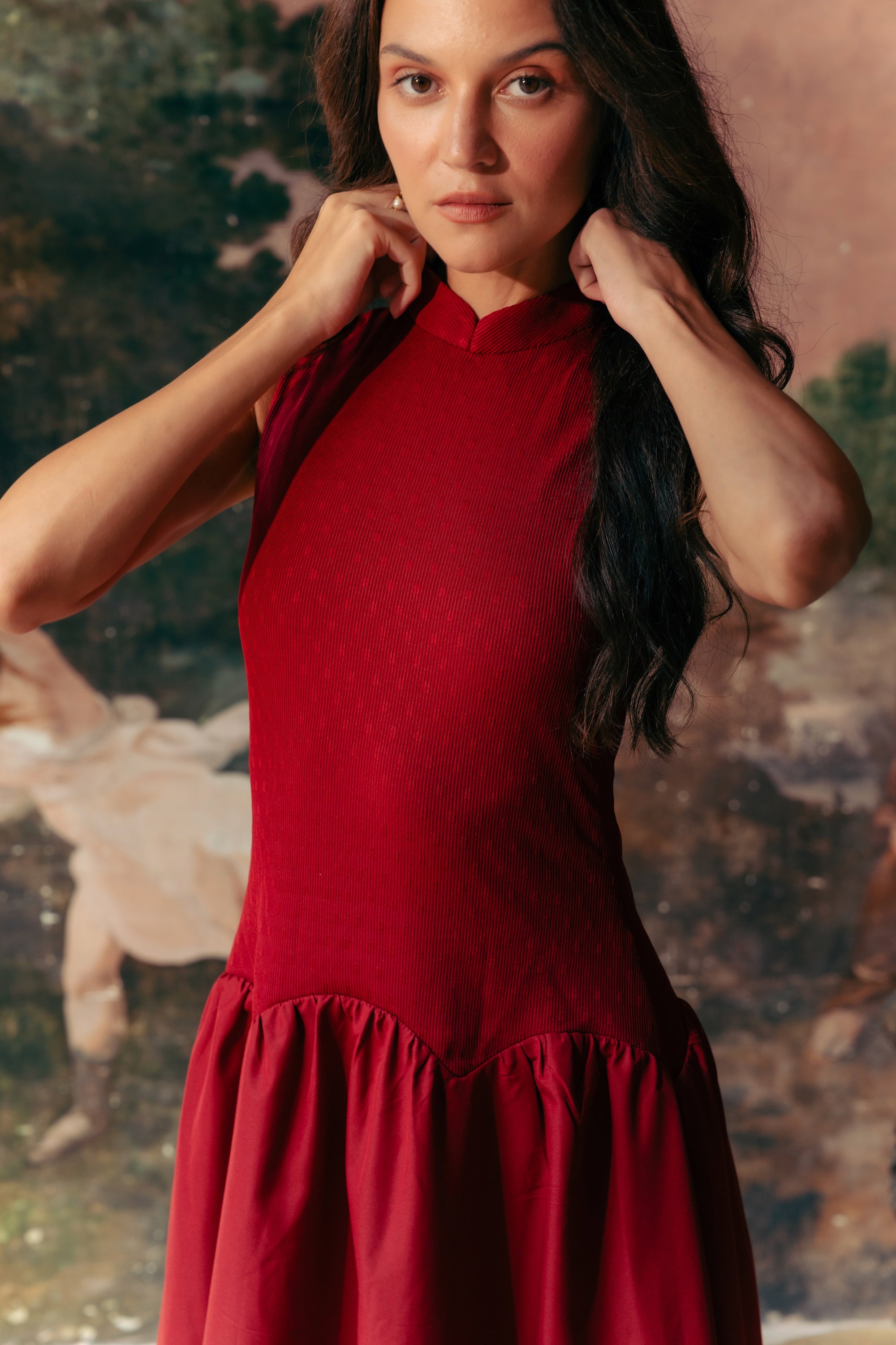 Estee Drop Waisted Maxi Cheongsam - Red / Black