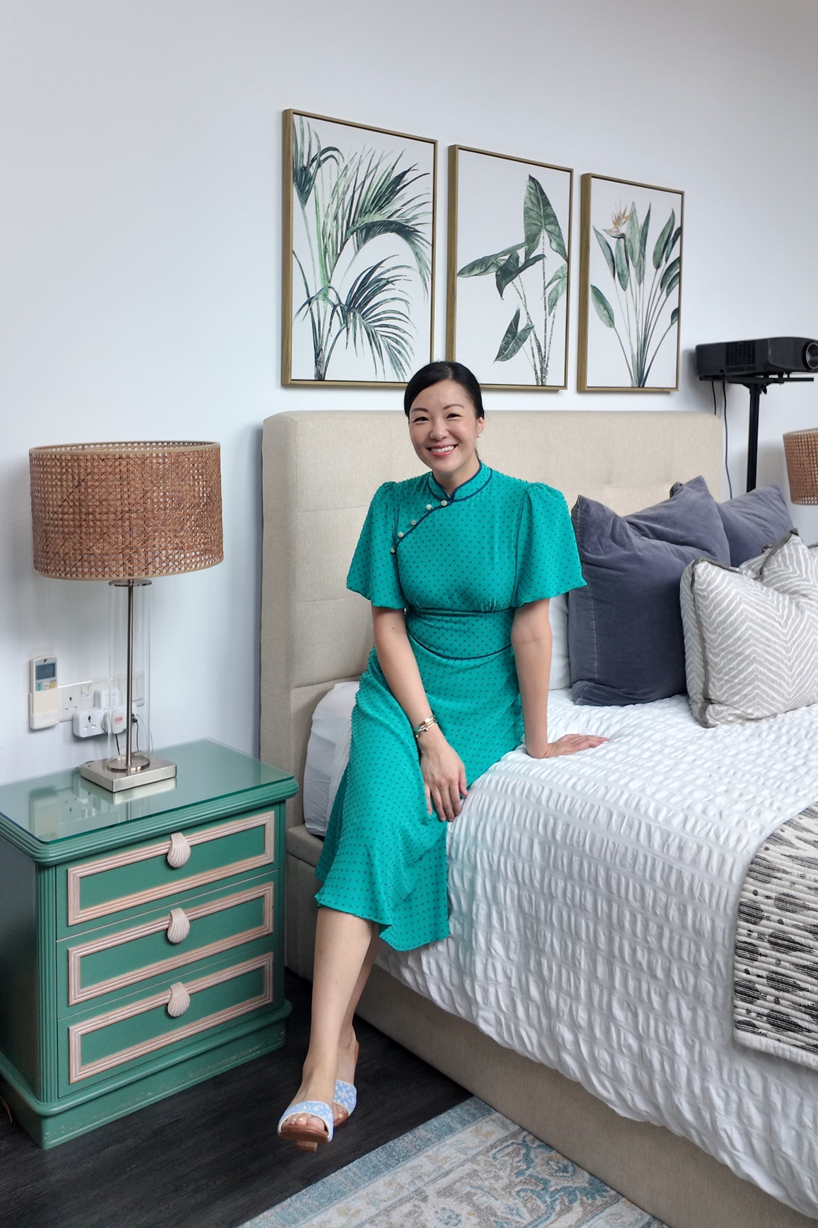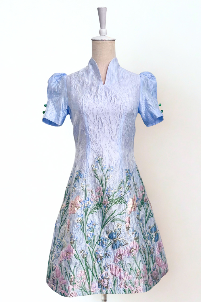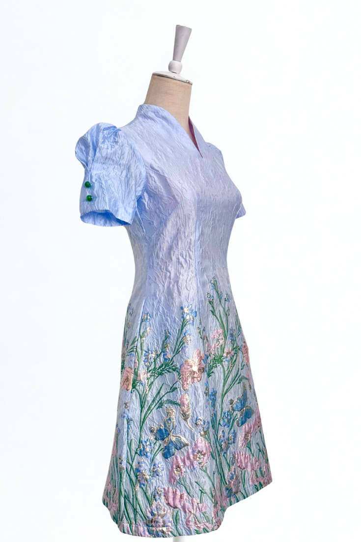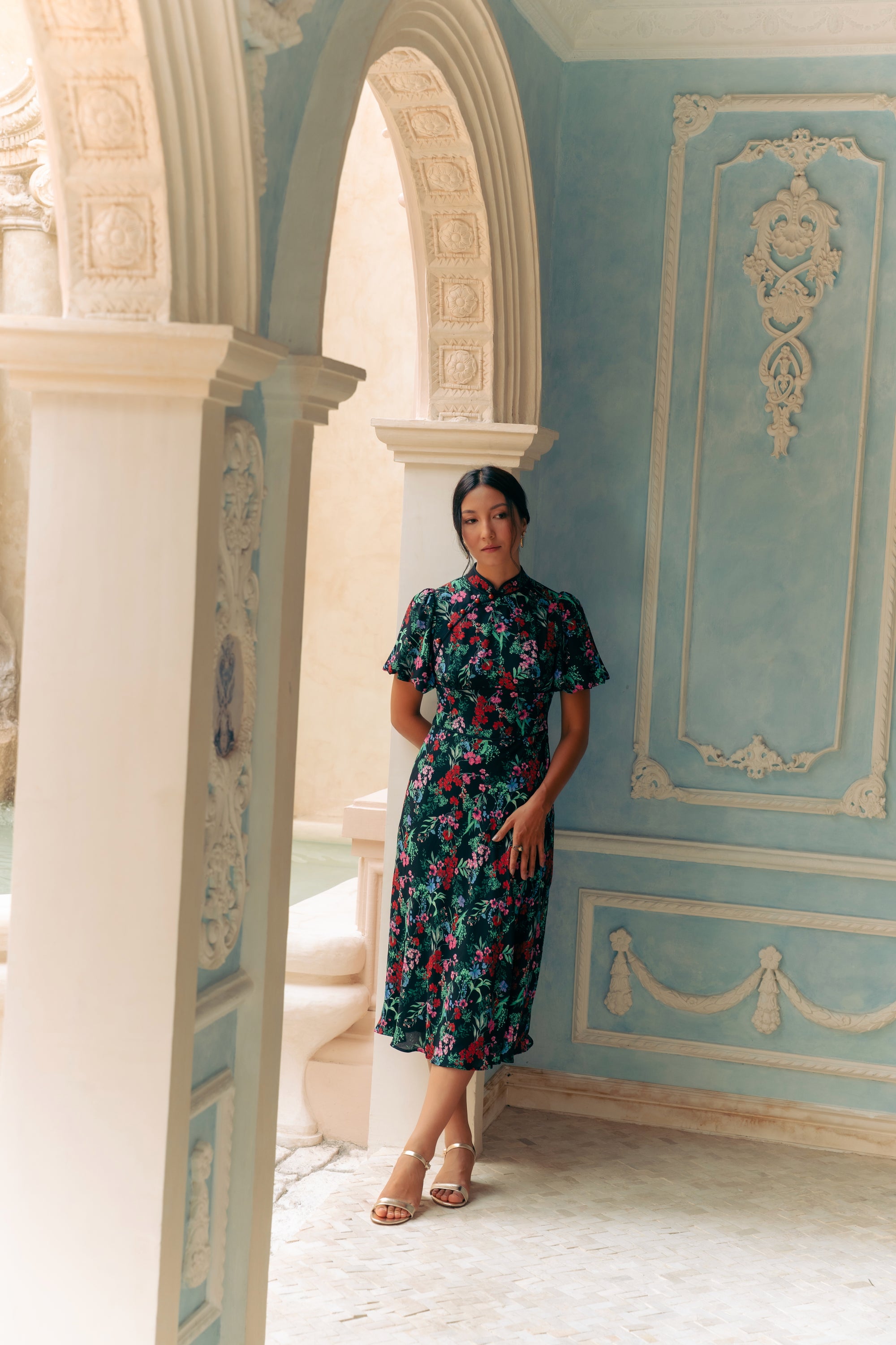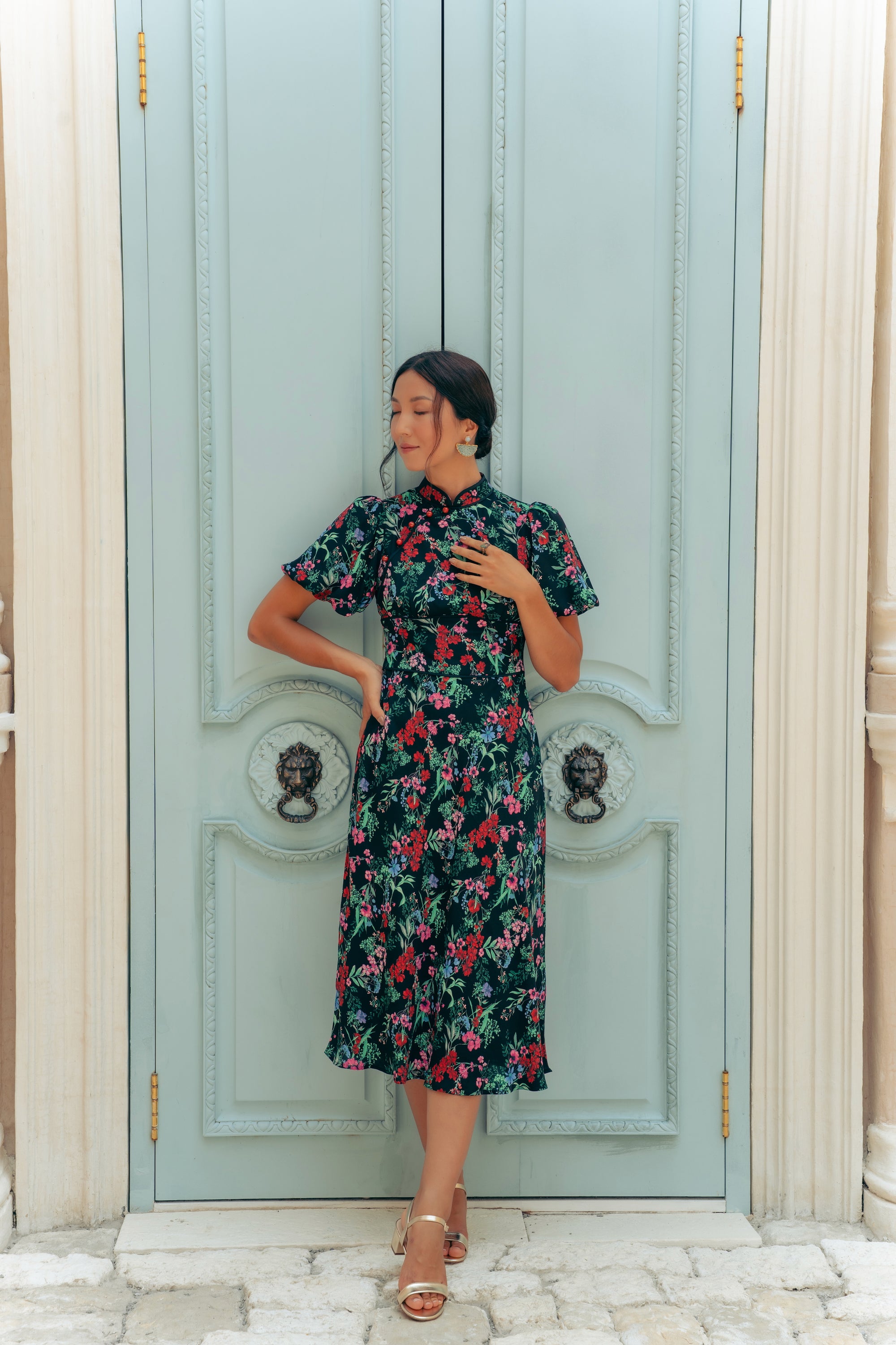 Jayne Retro Cheongsam - Teal / Moonlit Florals