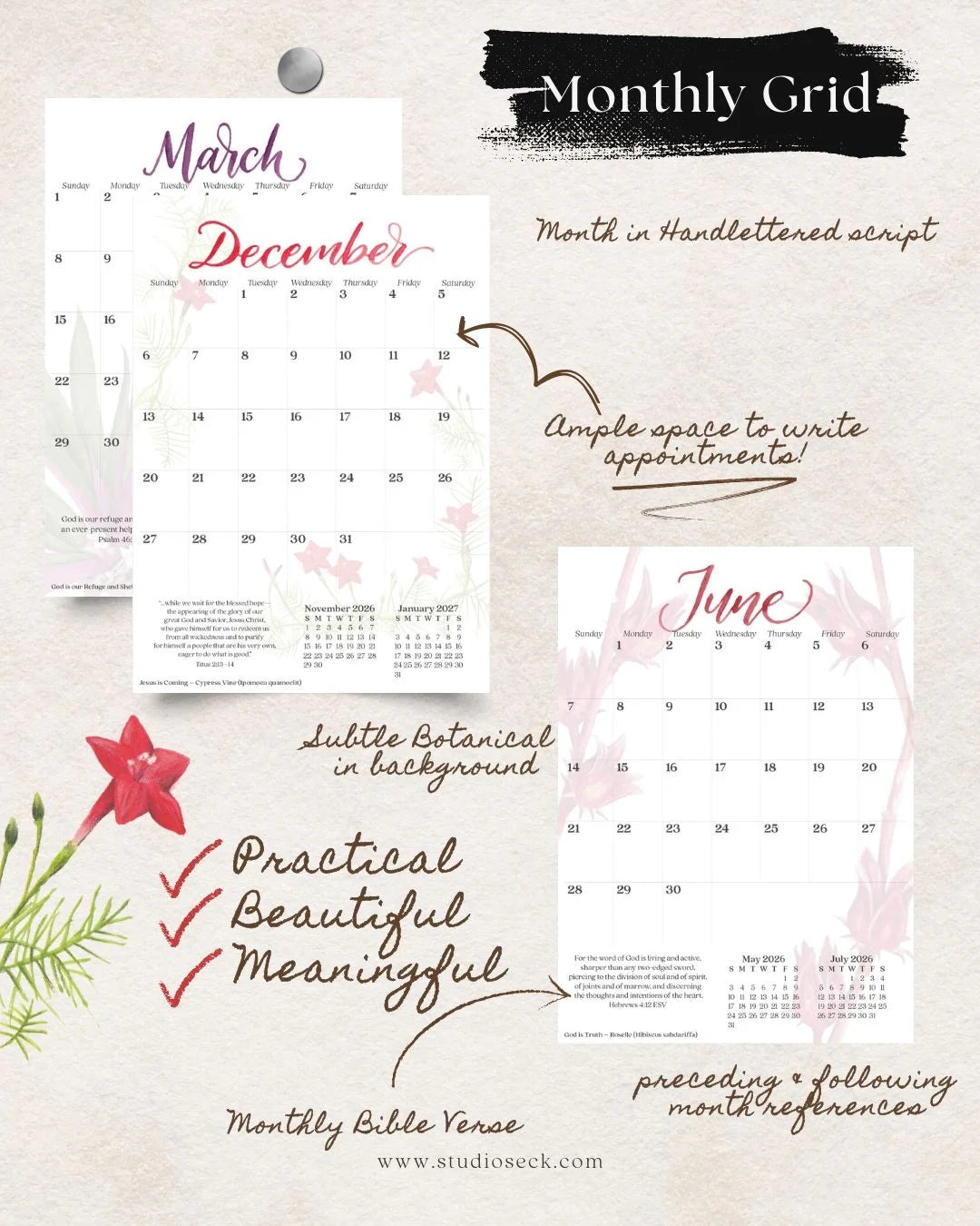 2026 Studio Seck Botanical Calendar