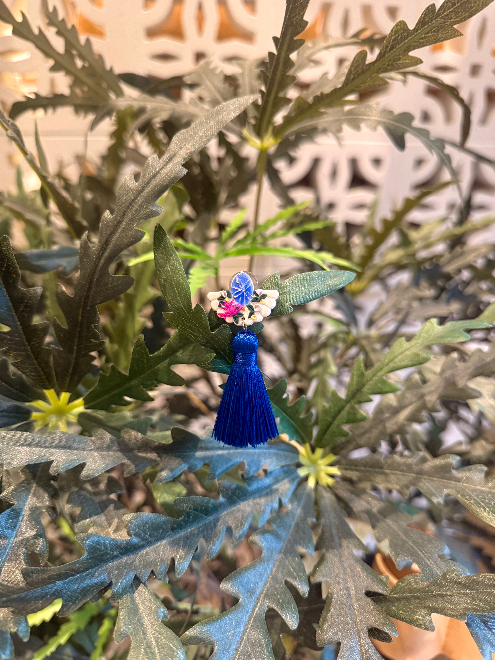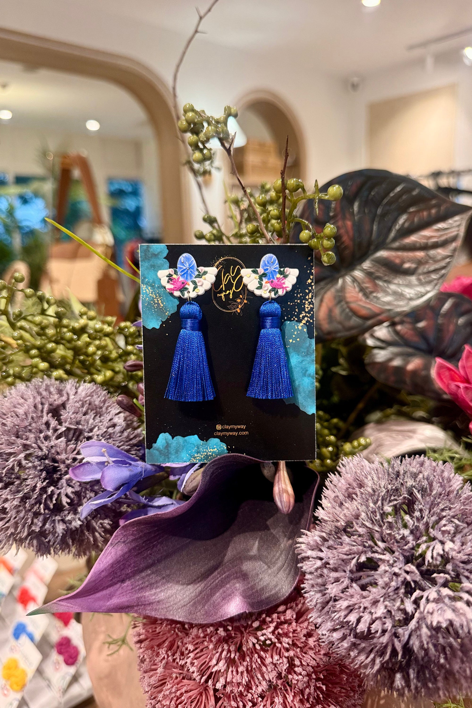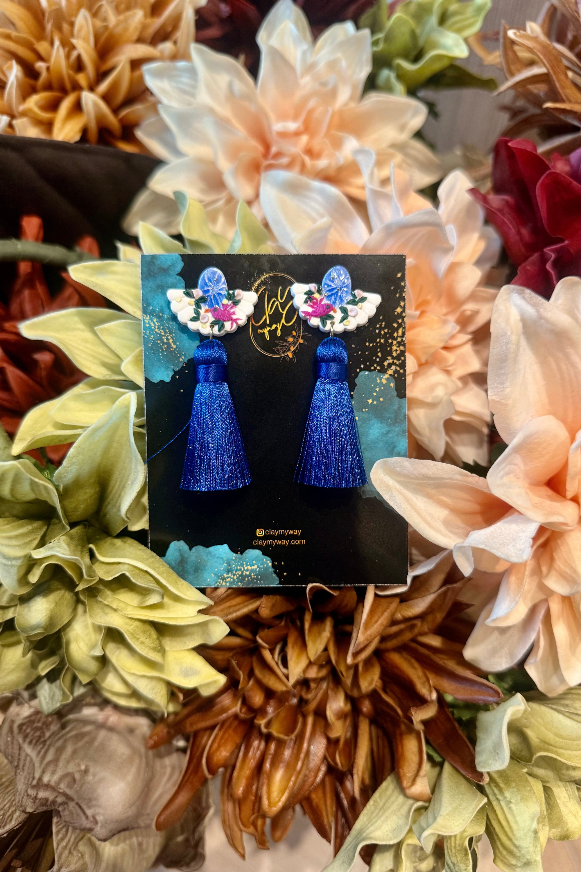 TMP x ClayMyWay Earrings - Cobalt Bird Tassels