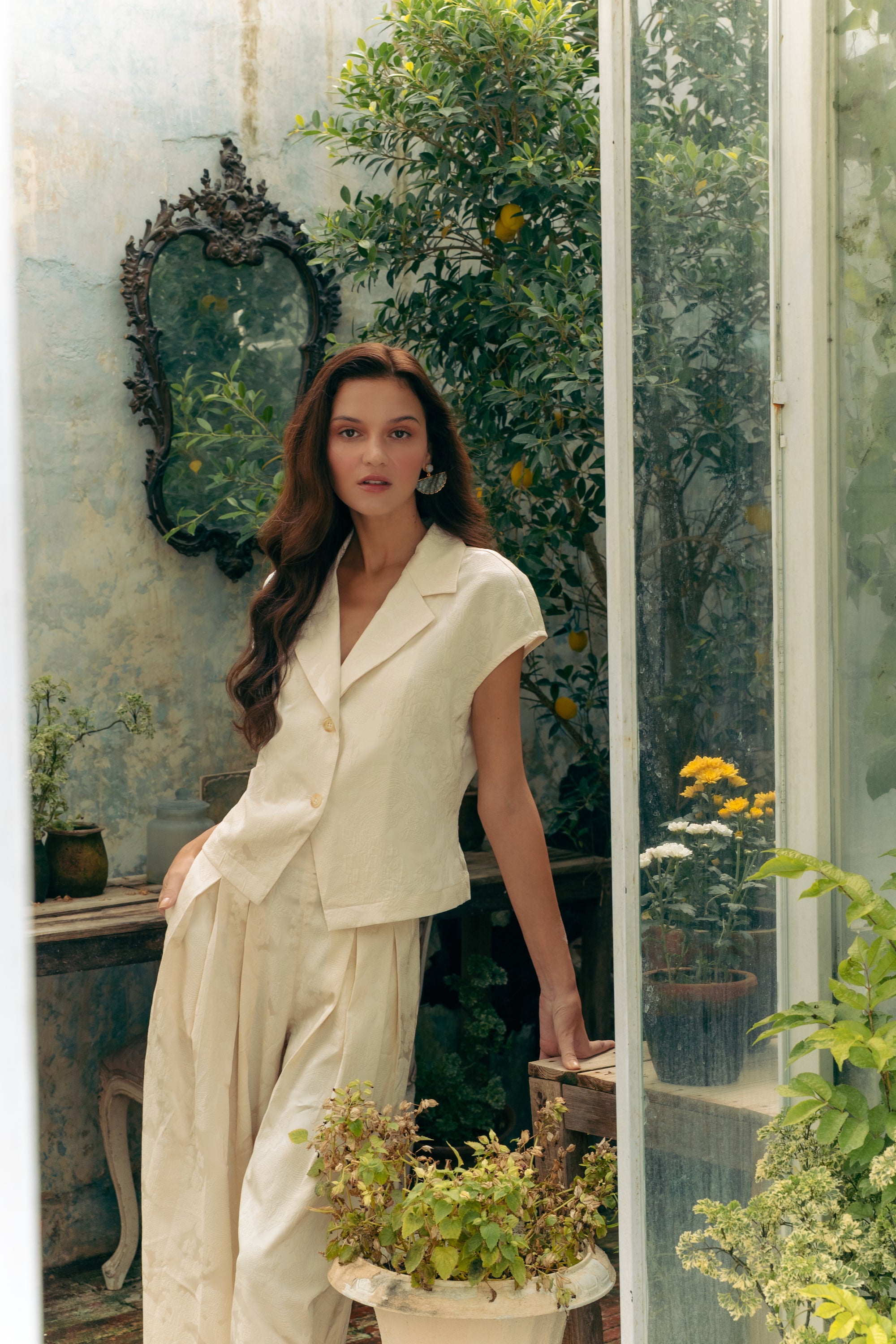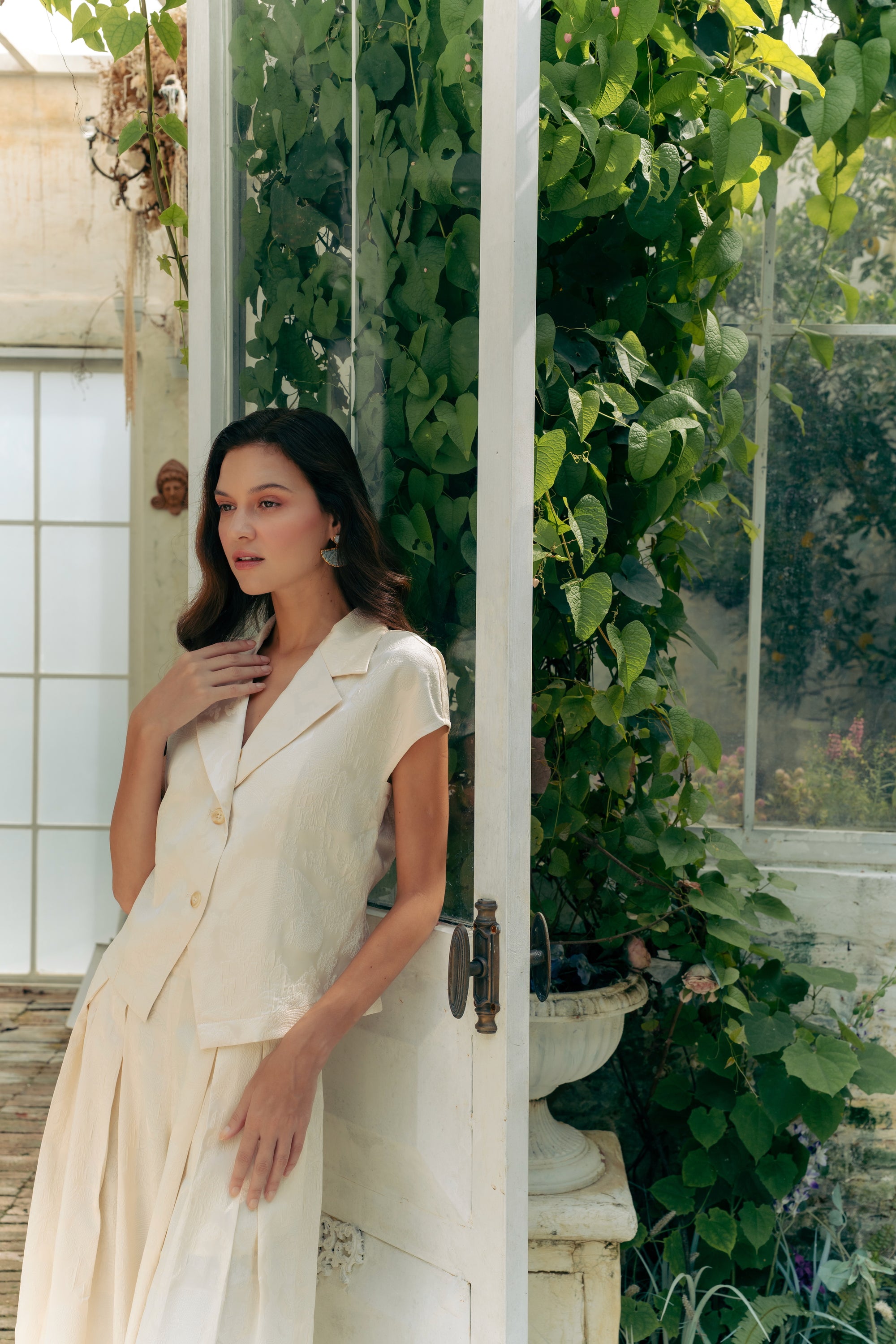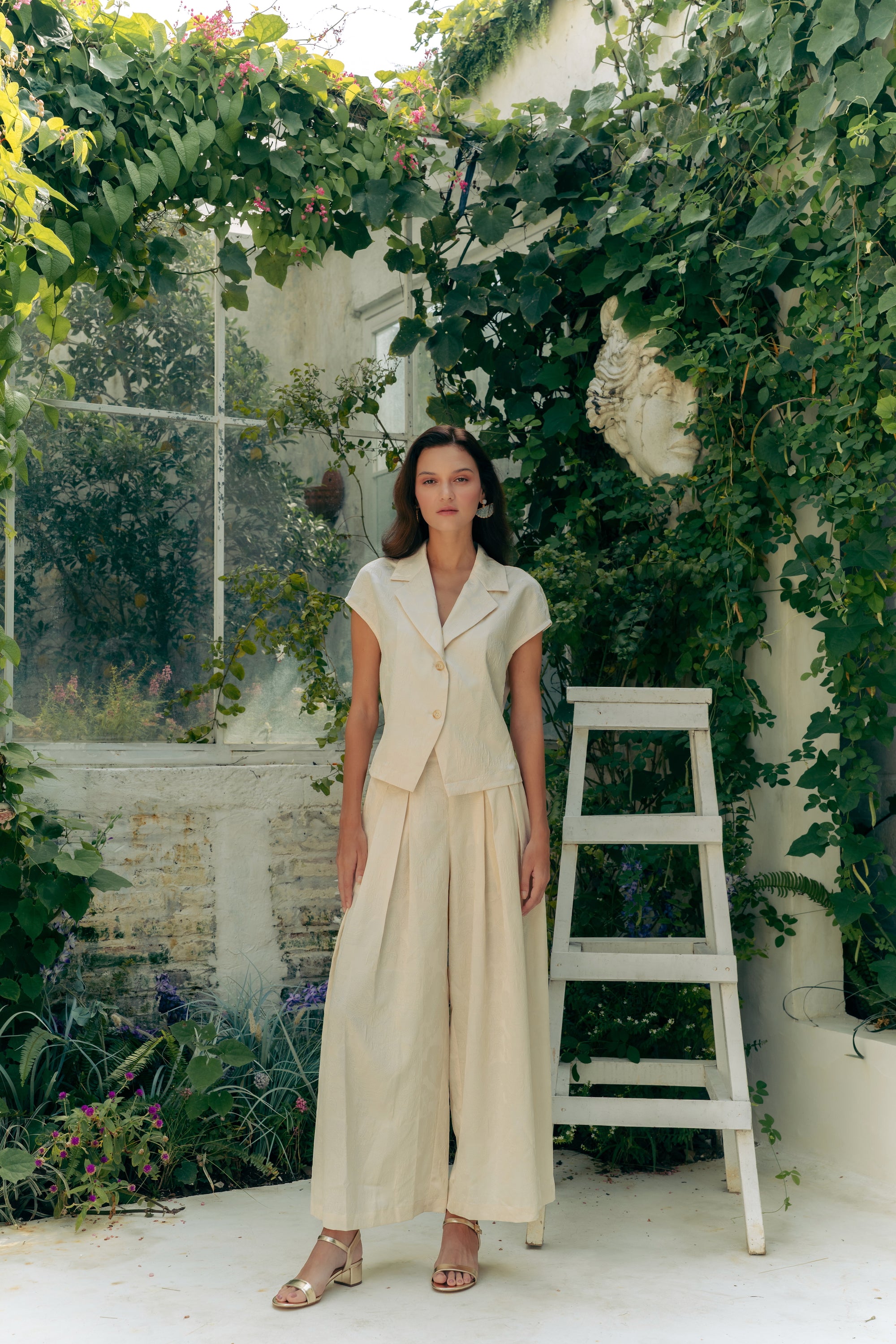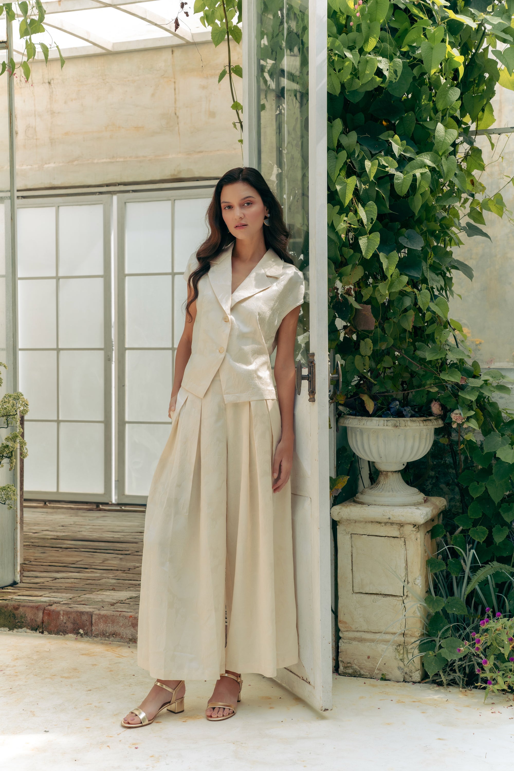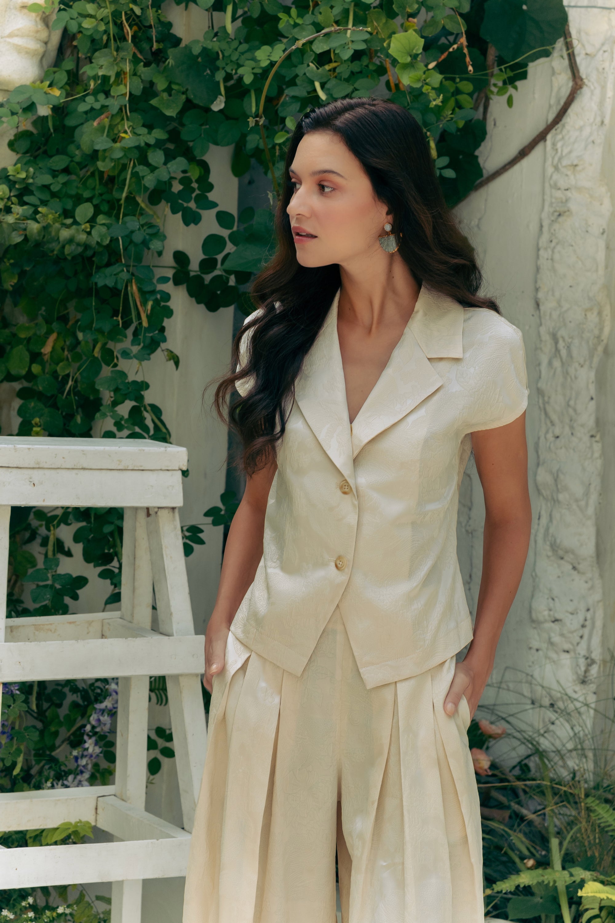 Jade Silky Pants Set - Cream / Emerald