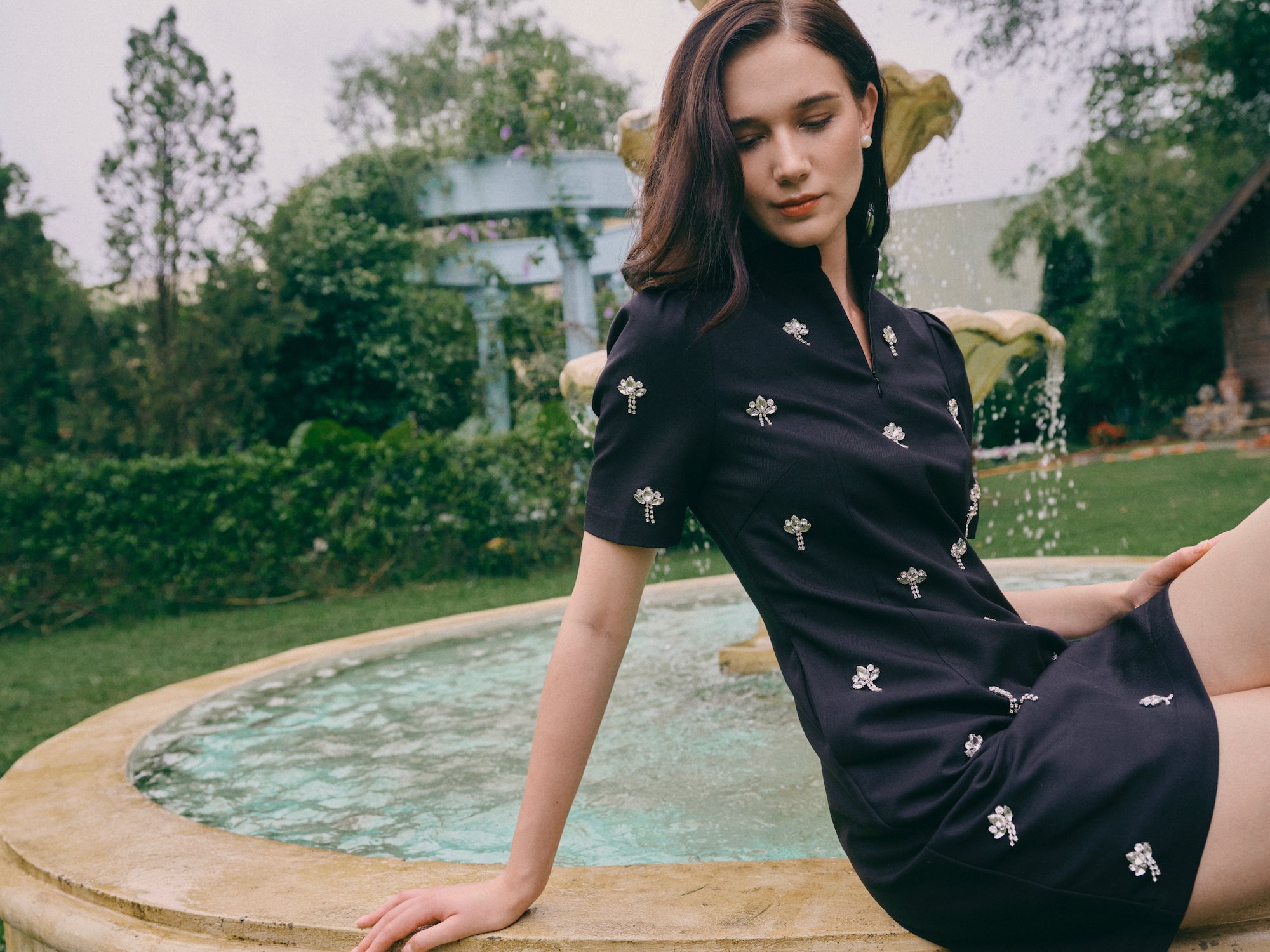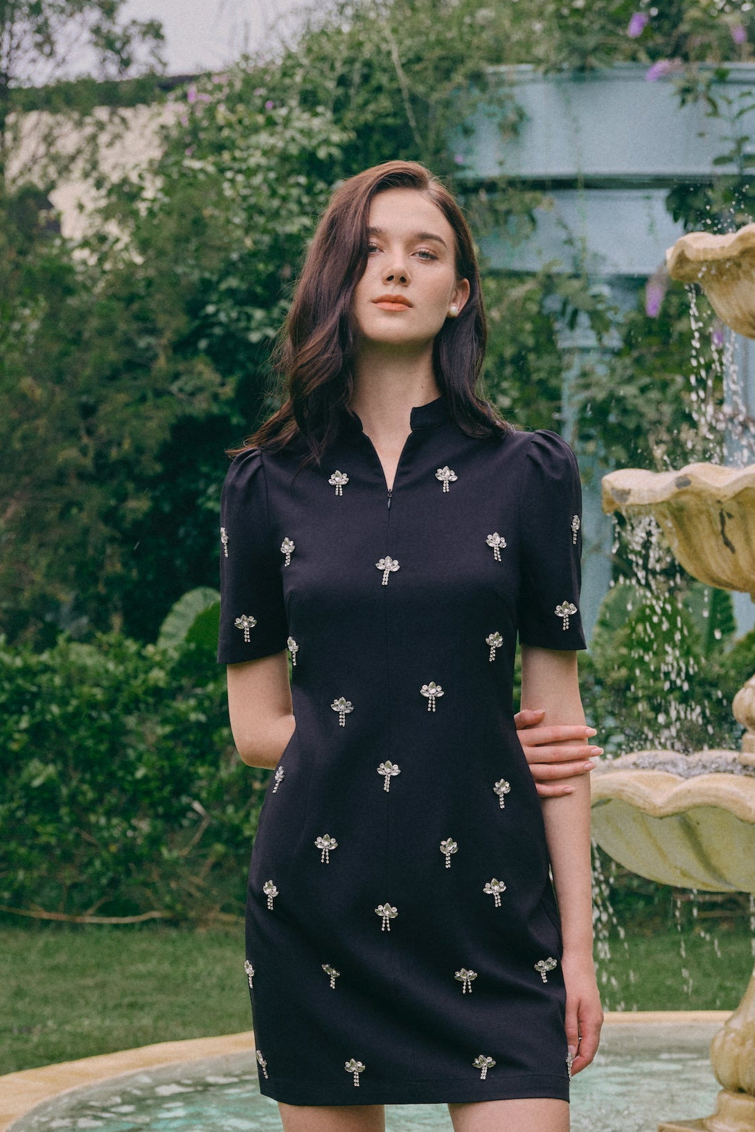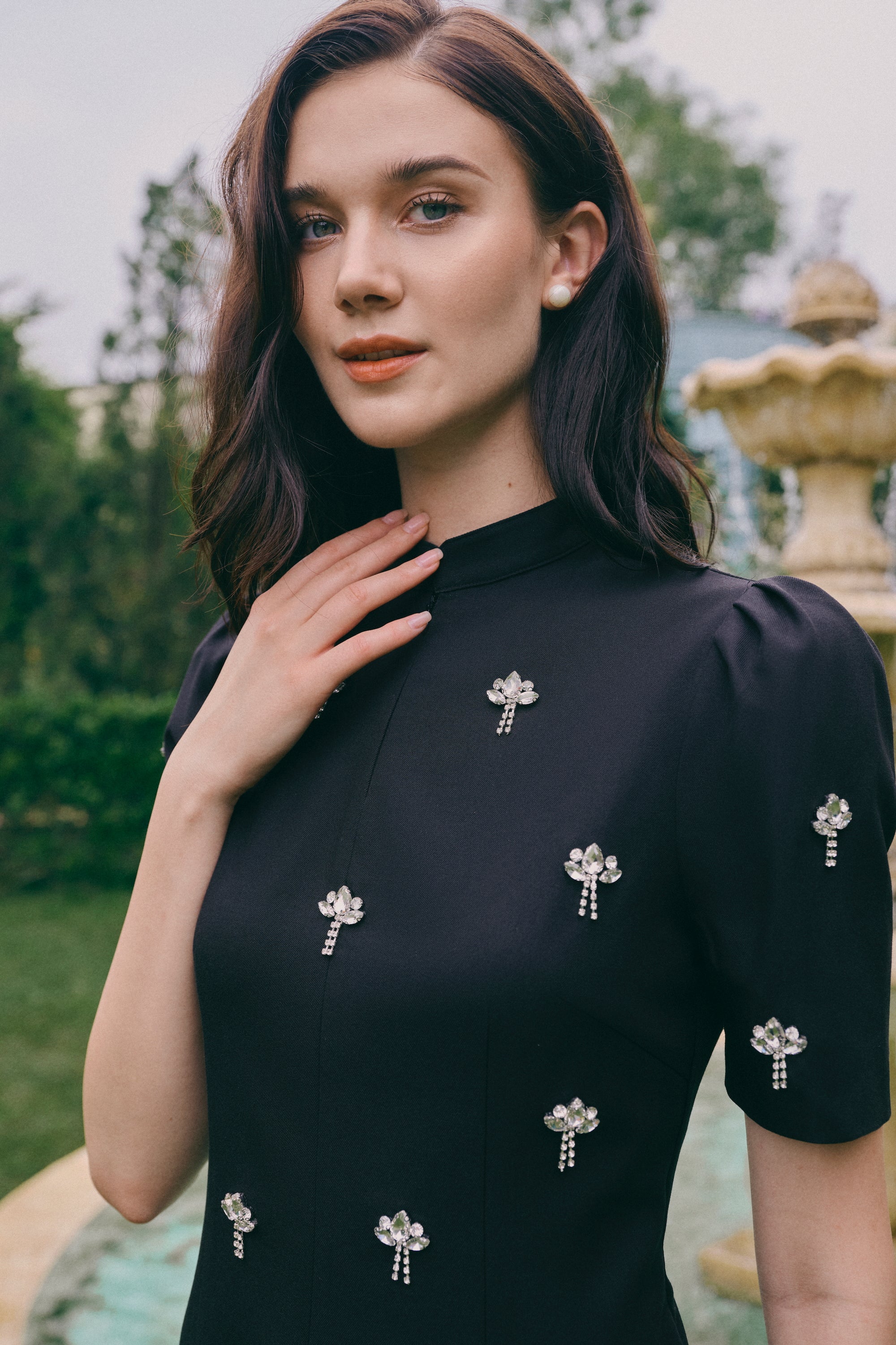 Chevonne Bejewelled Cheongsam - Black / Ice Blue