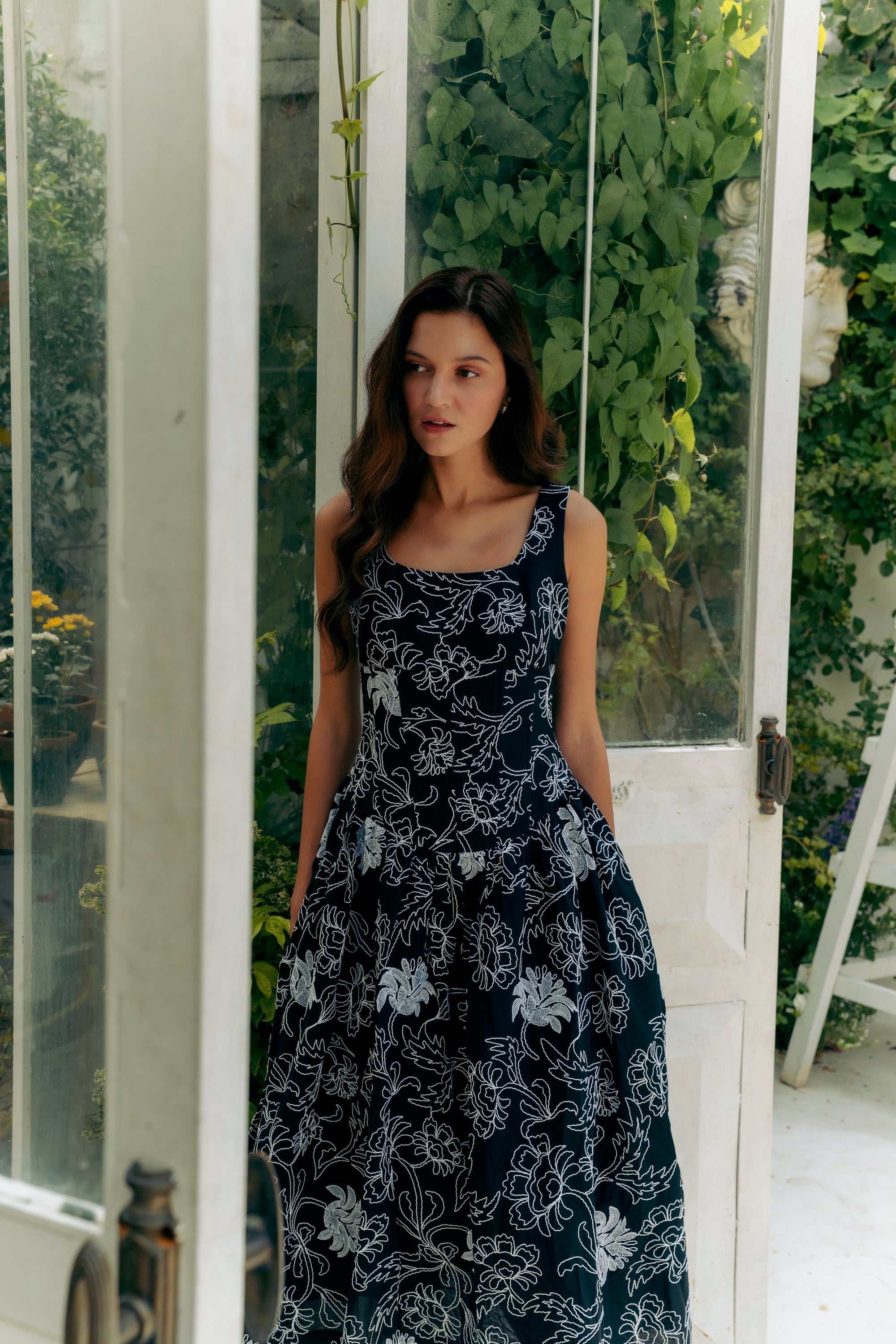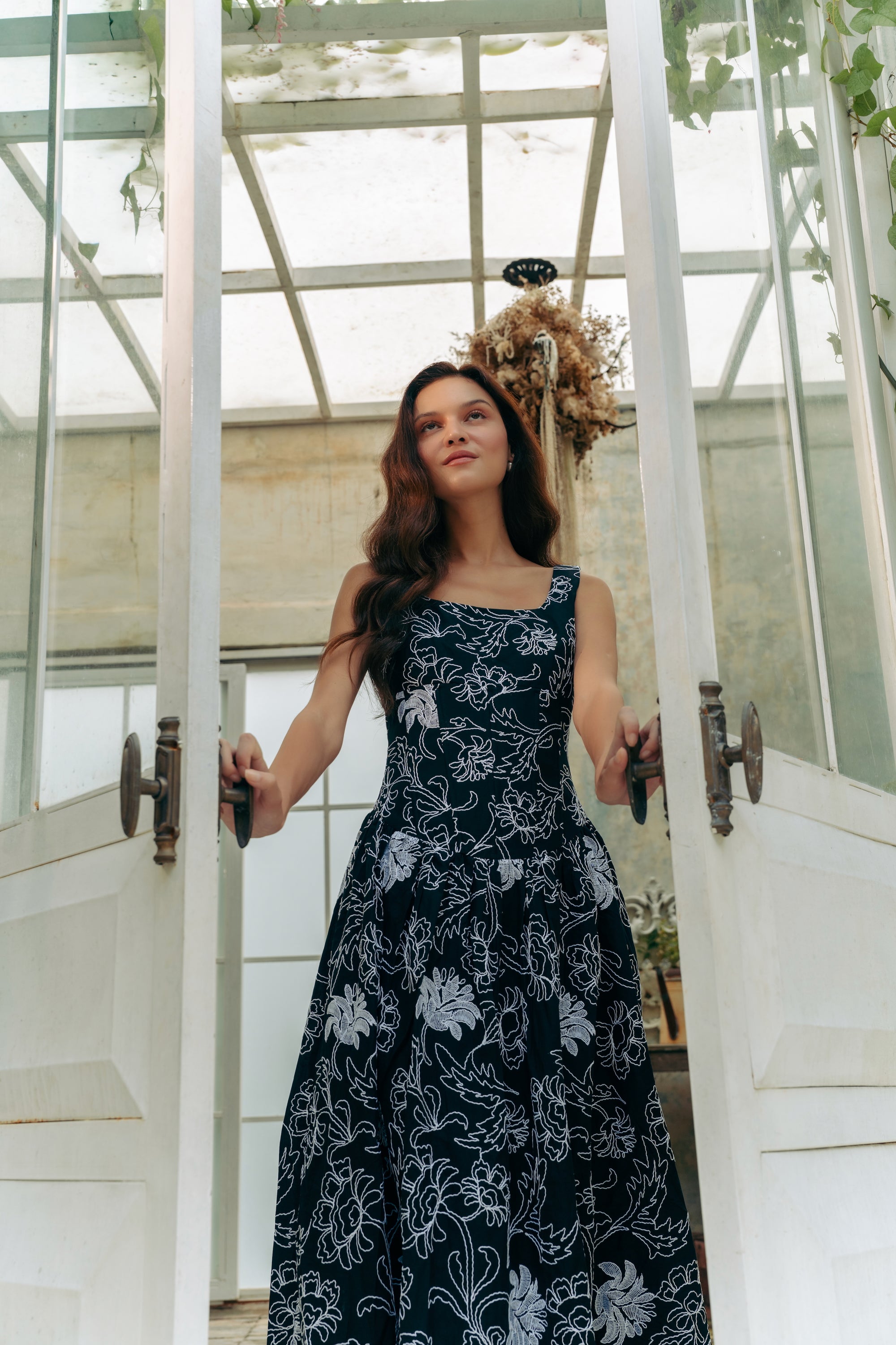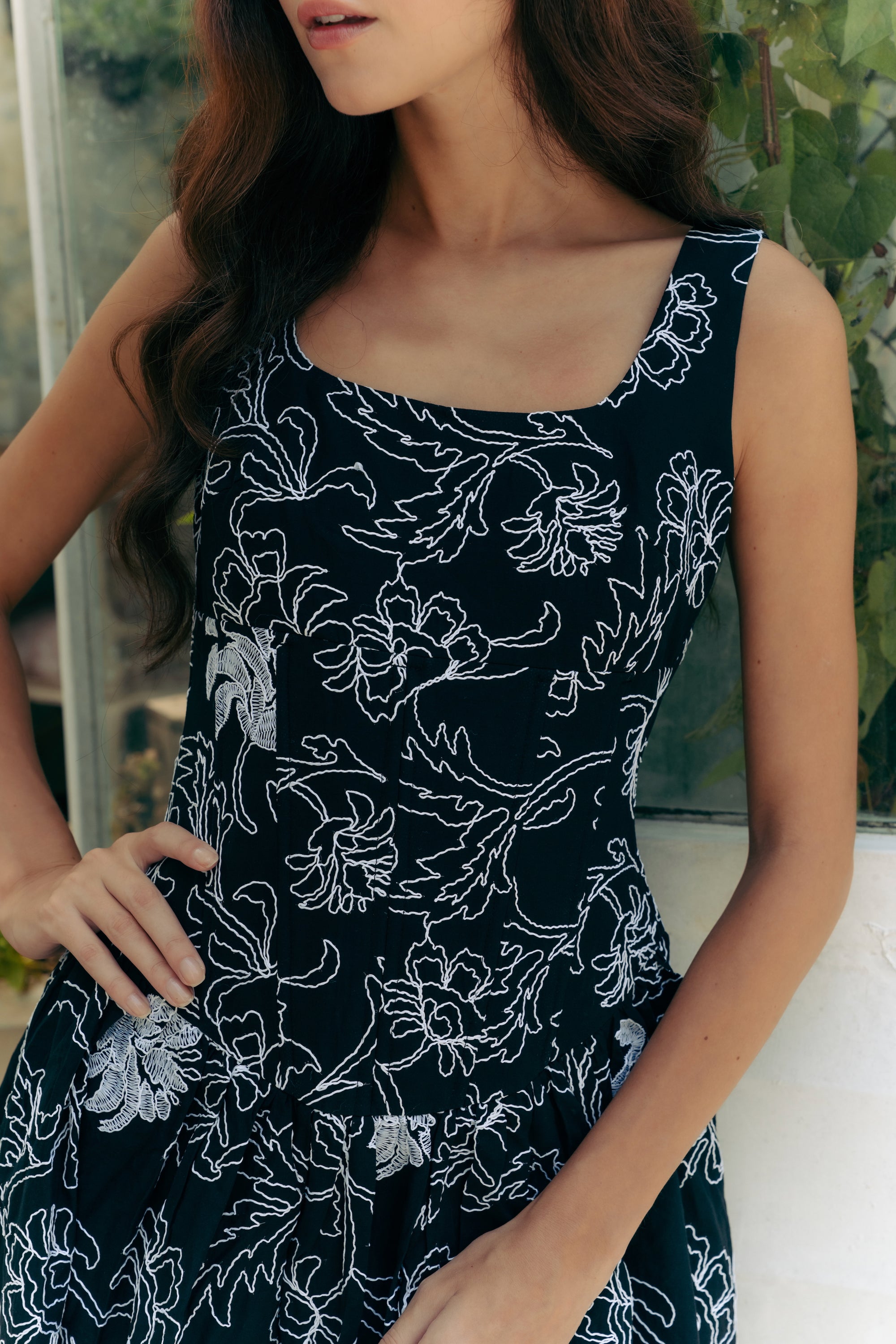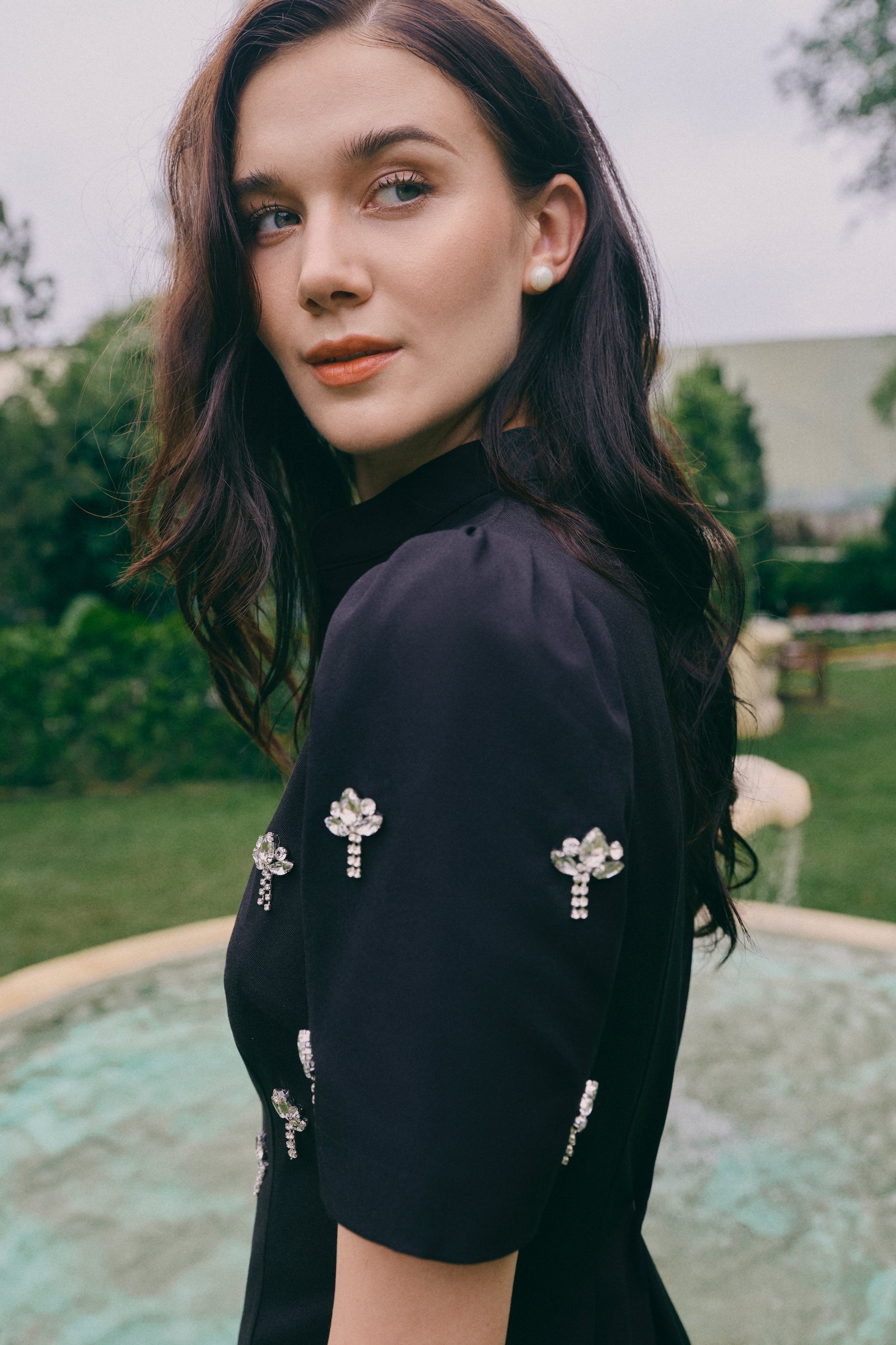 Chevonne Bejewelled Cheongsam - Black / Ice Blue