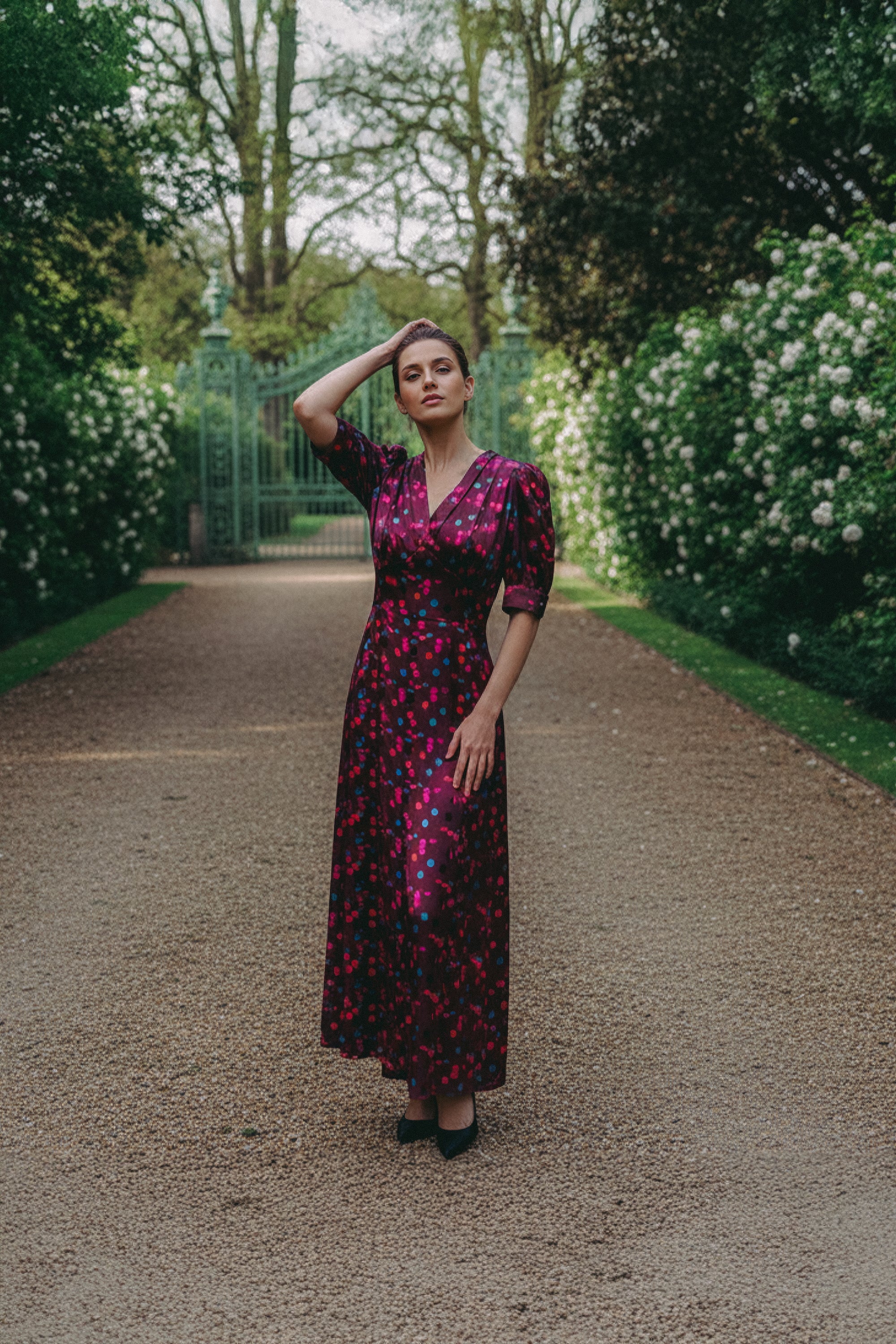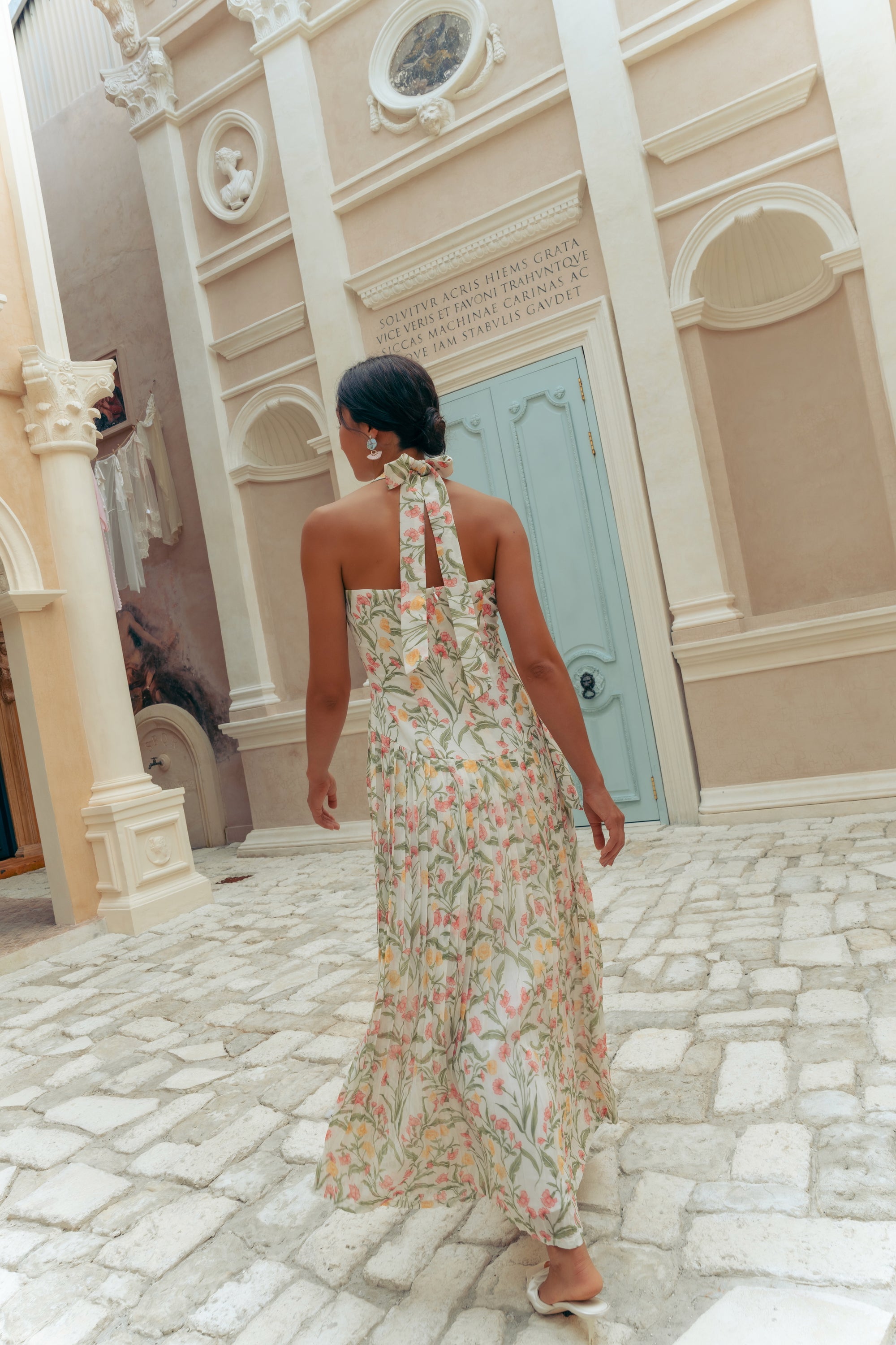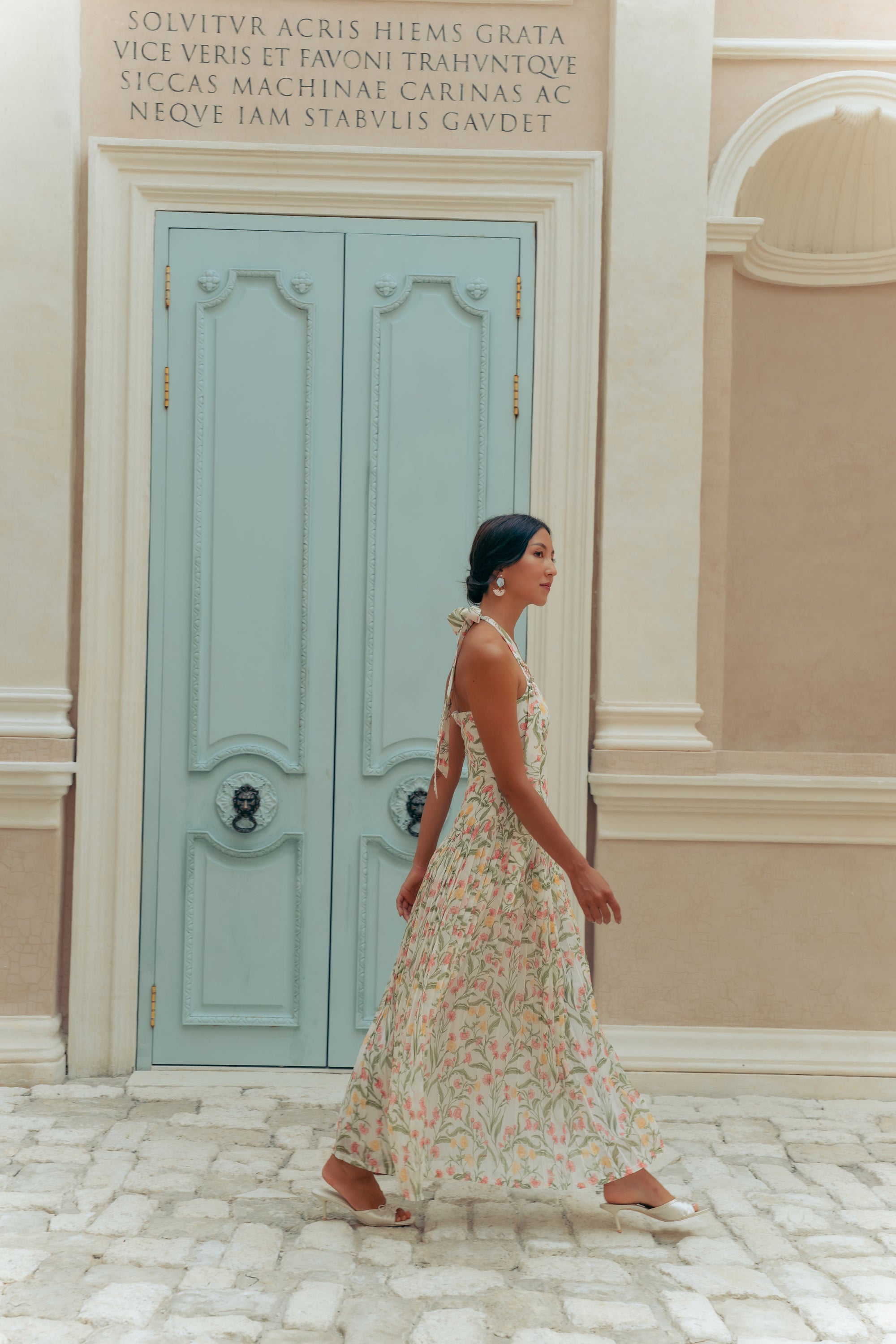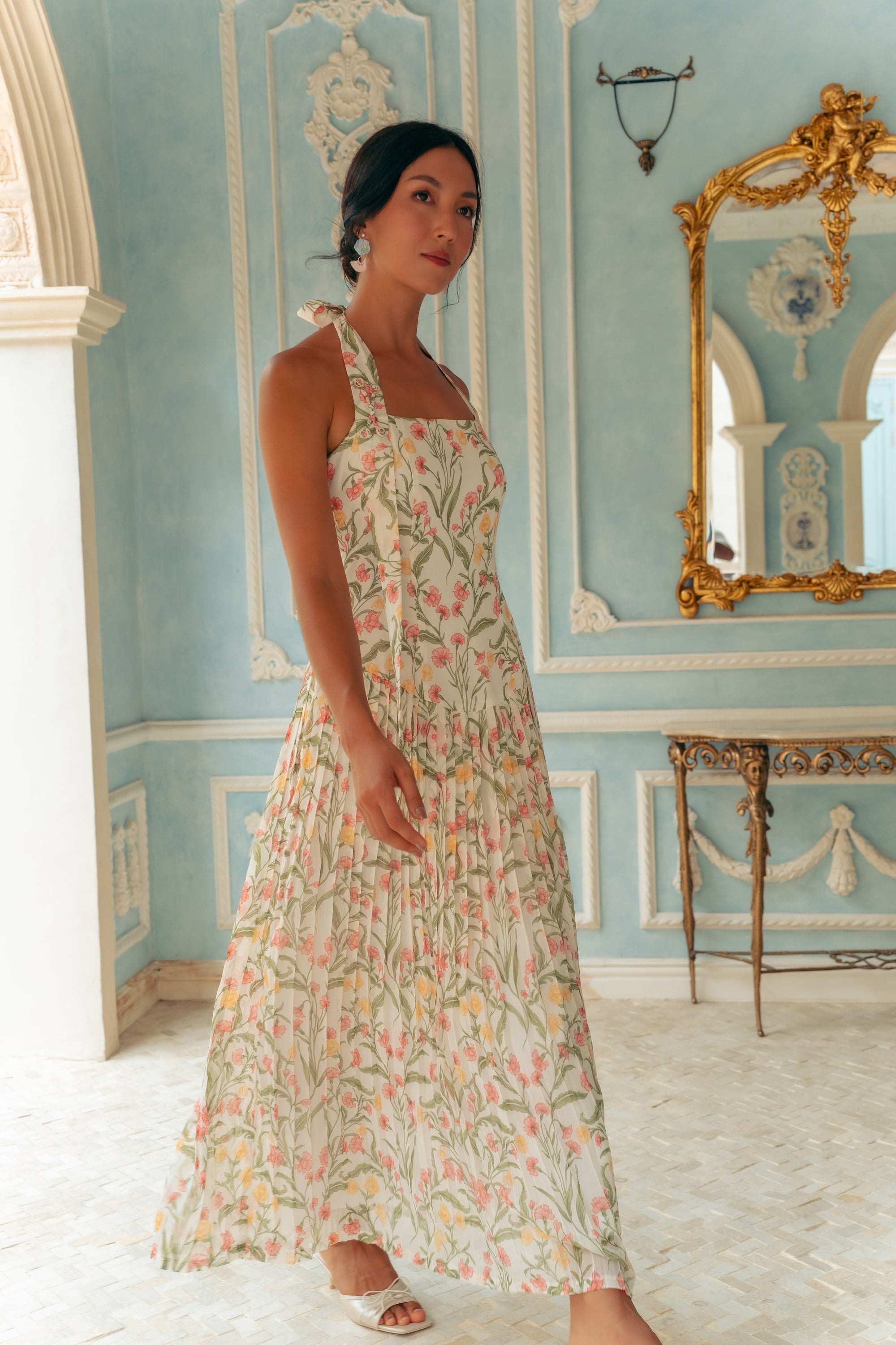 Gigi Pleated Maxi Cheongsam - Pastel Romance