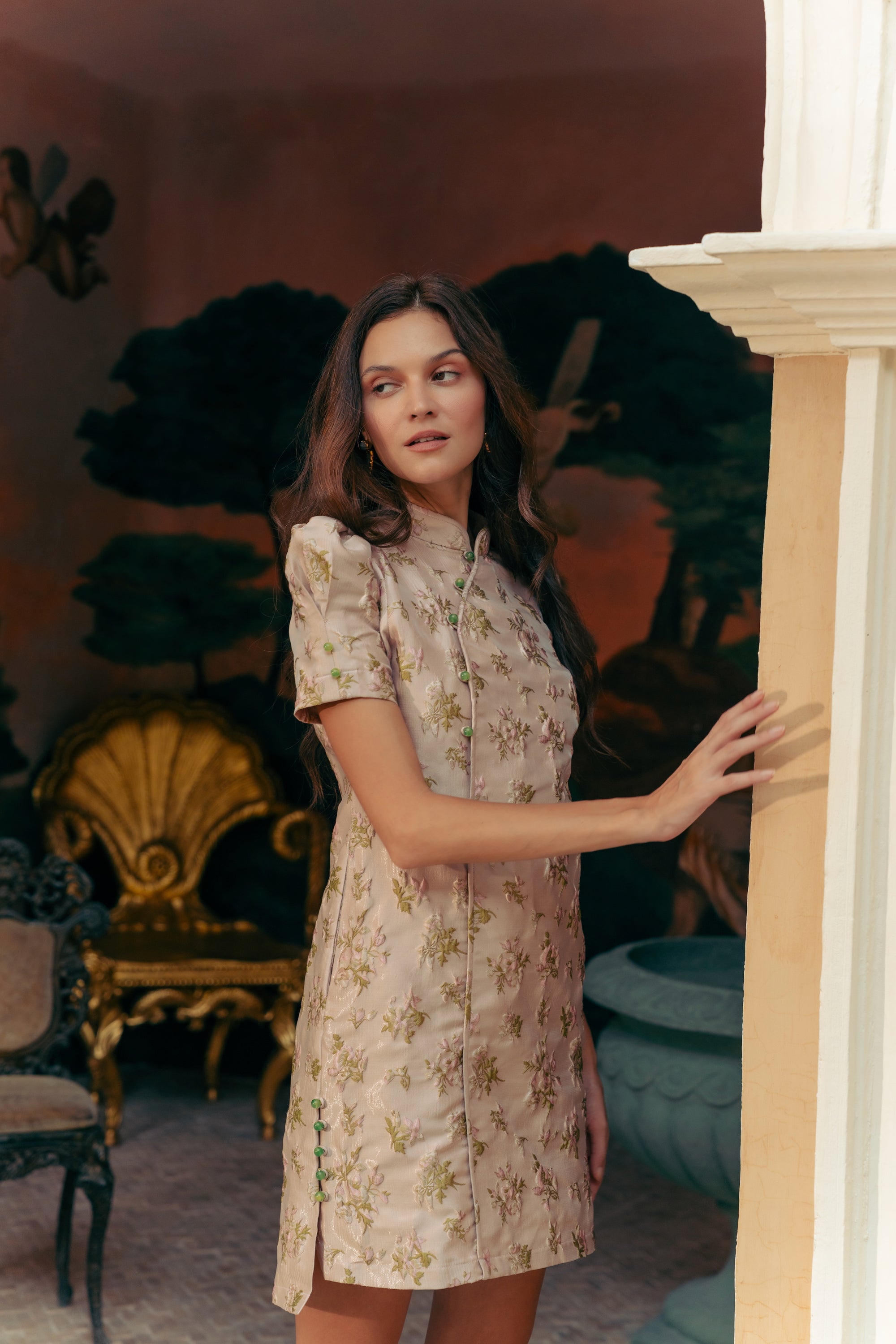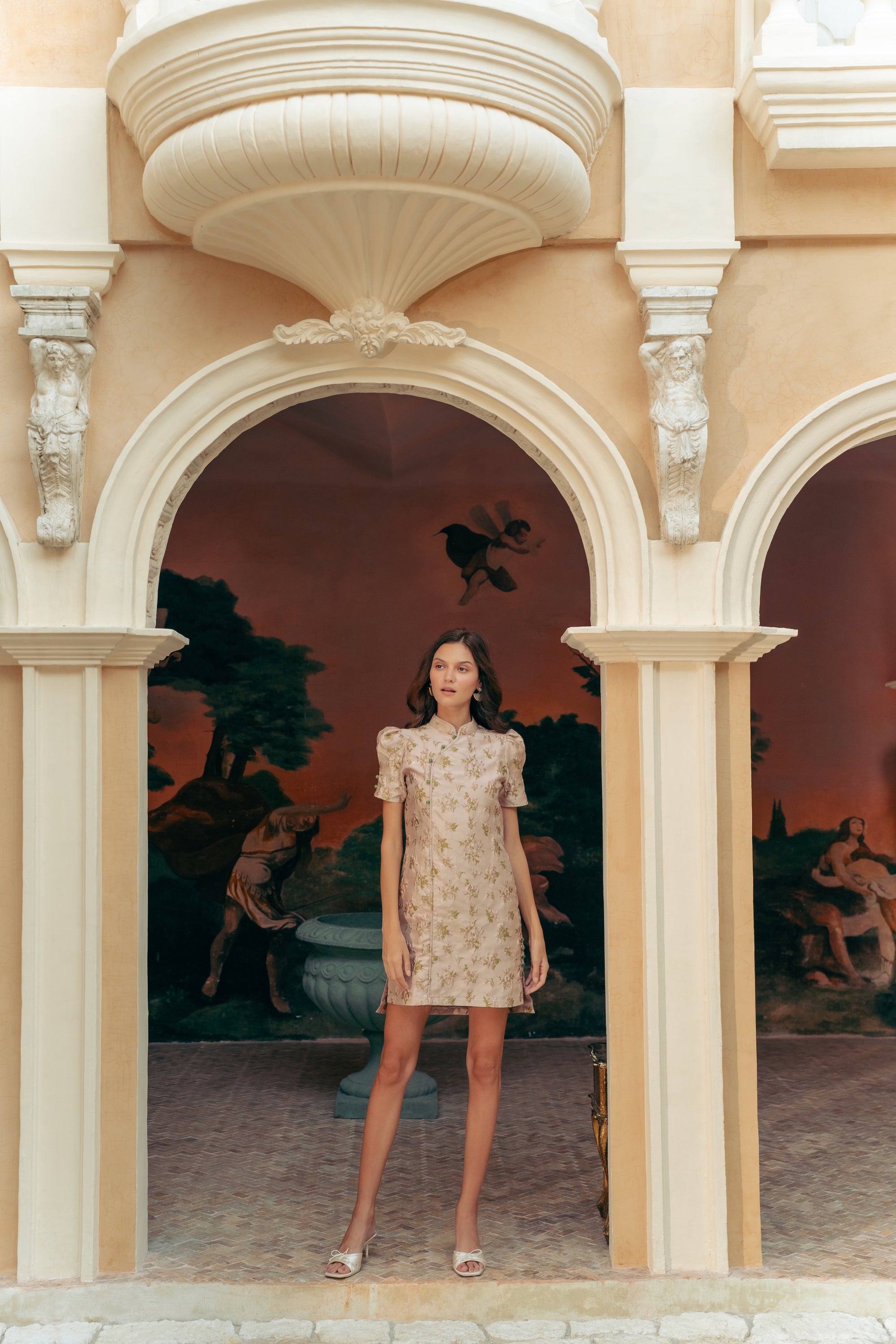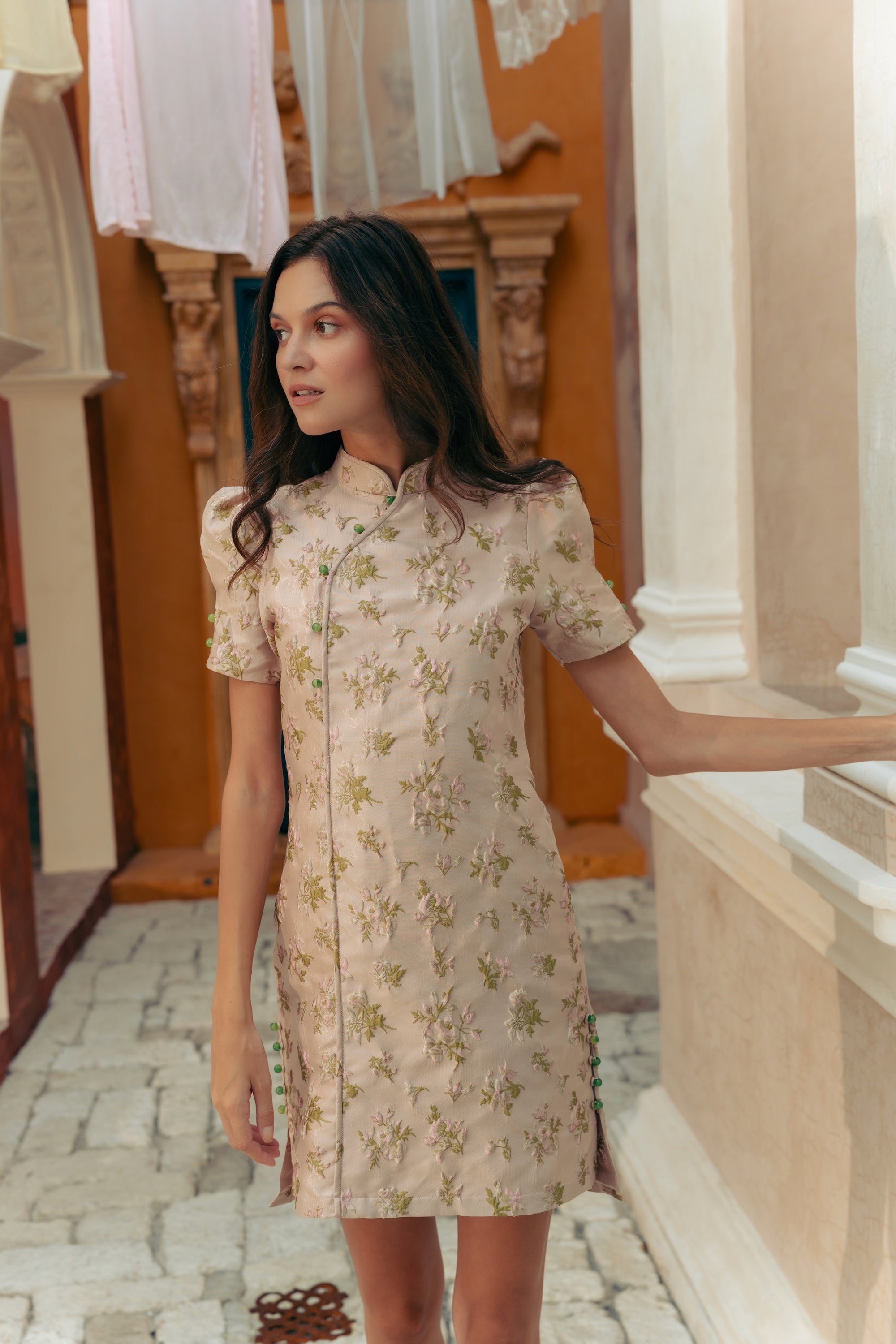 Signature Cut-Out Midi Cheongsam with Sleeves - Provence