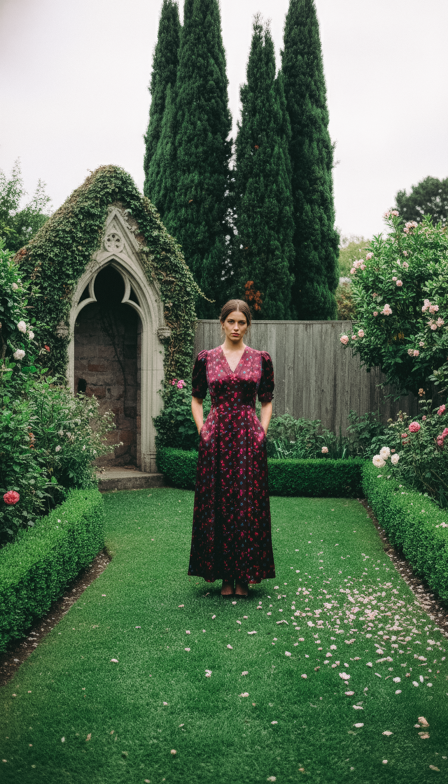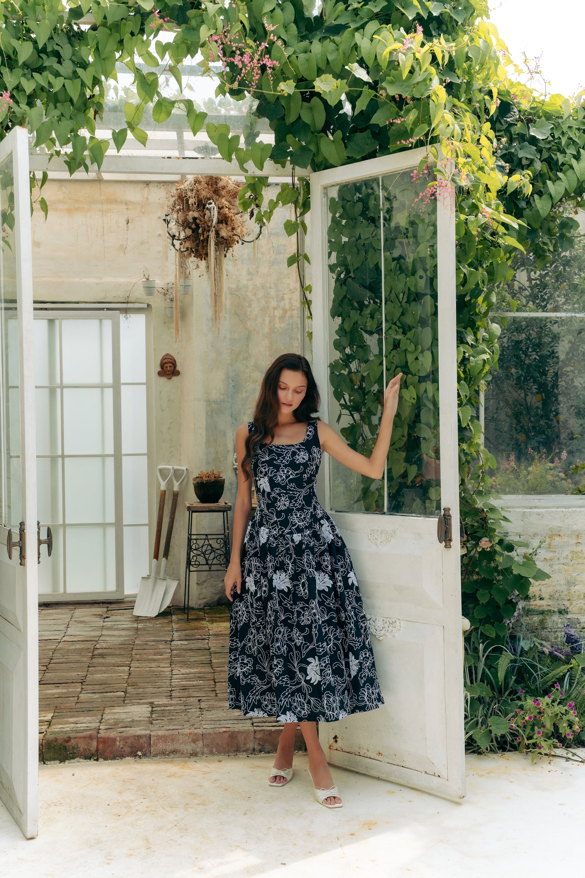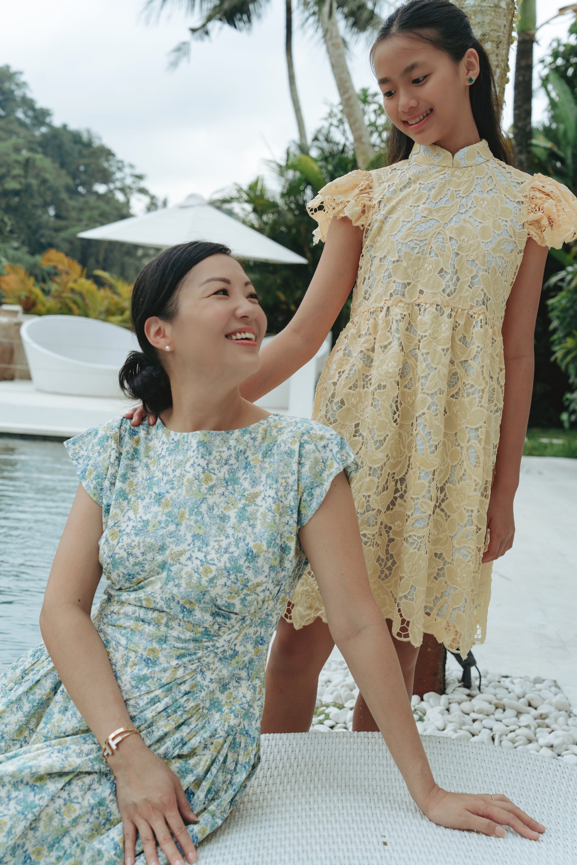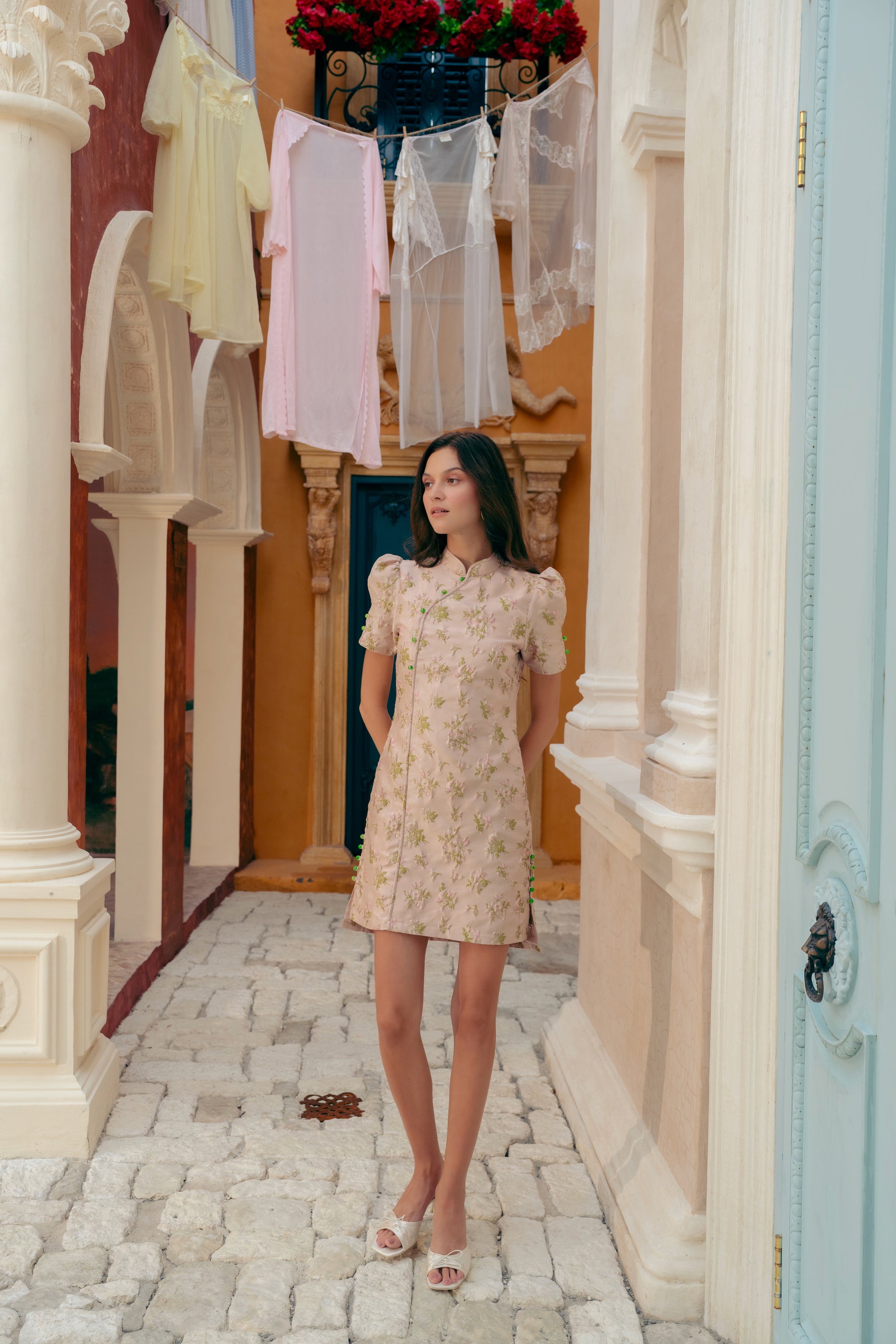 Signature Cut-Out Midi Cheongsam with Sleeves - Provence