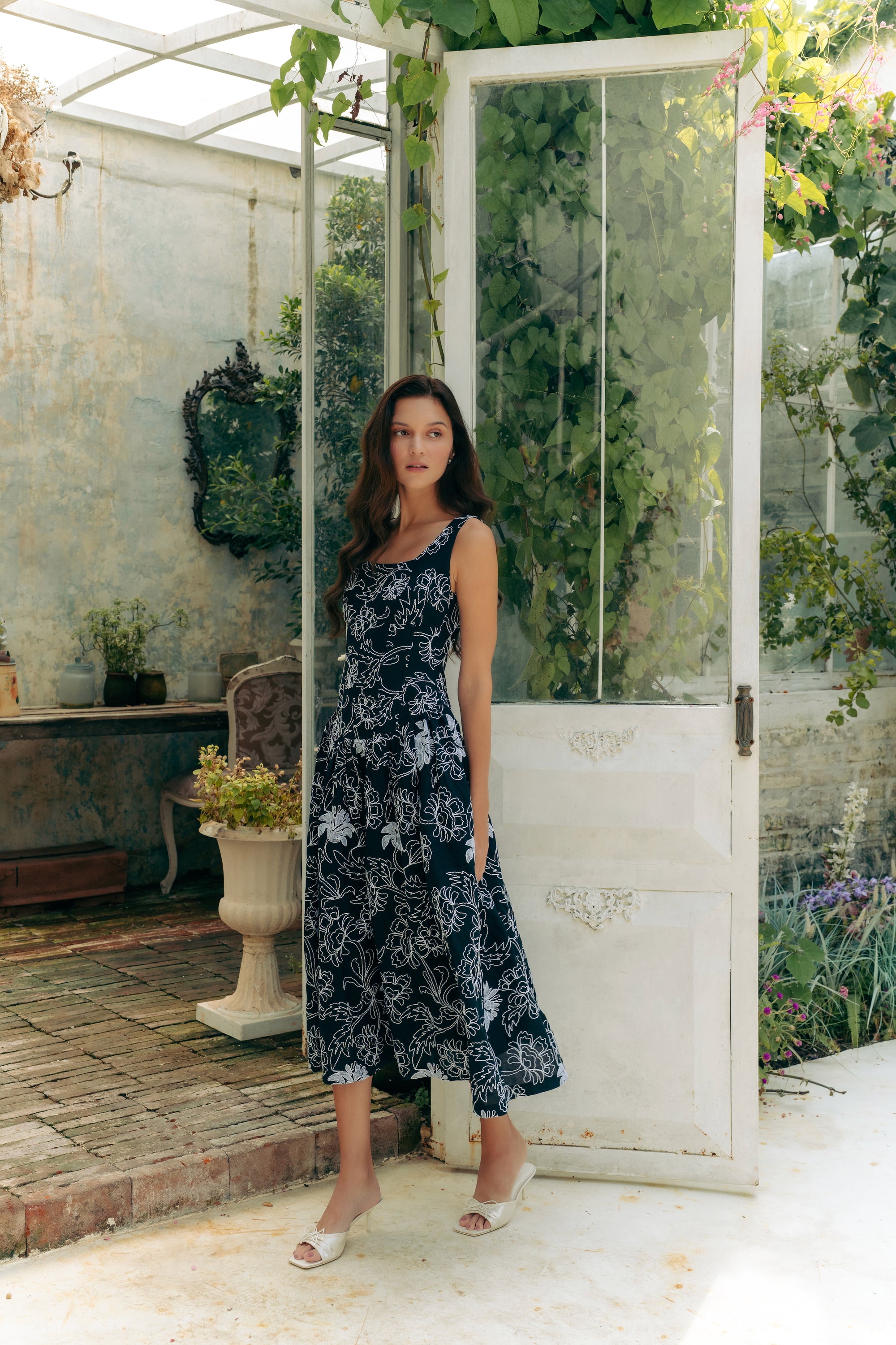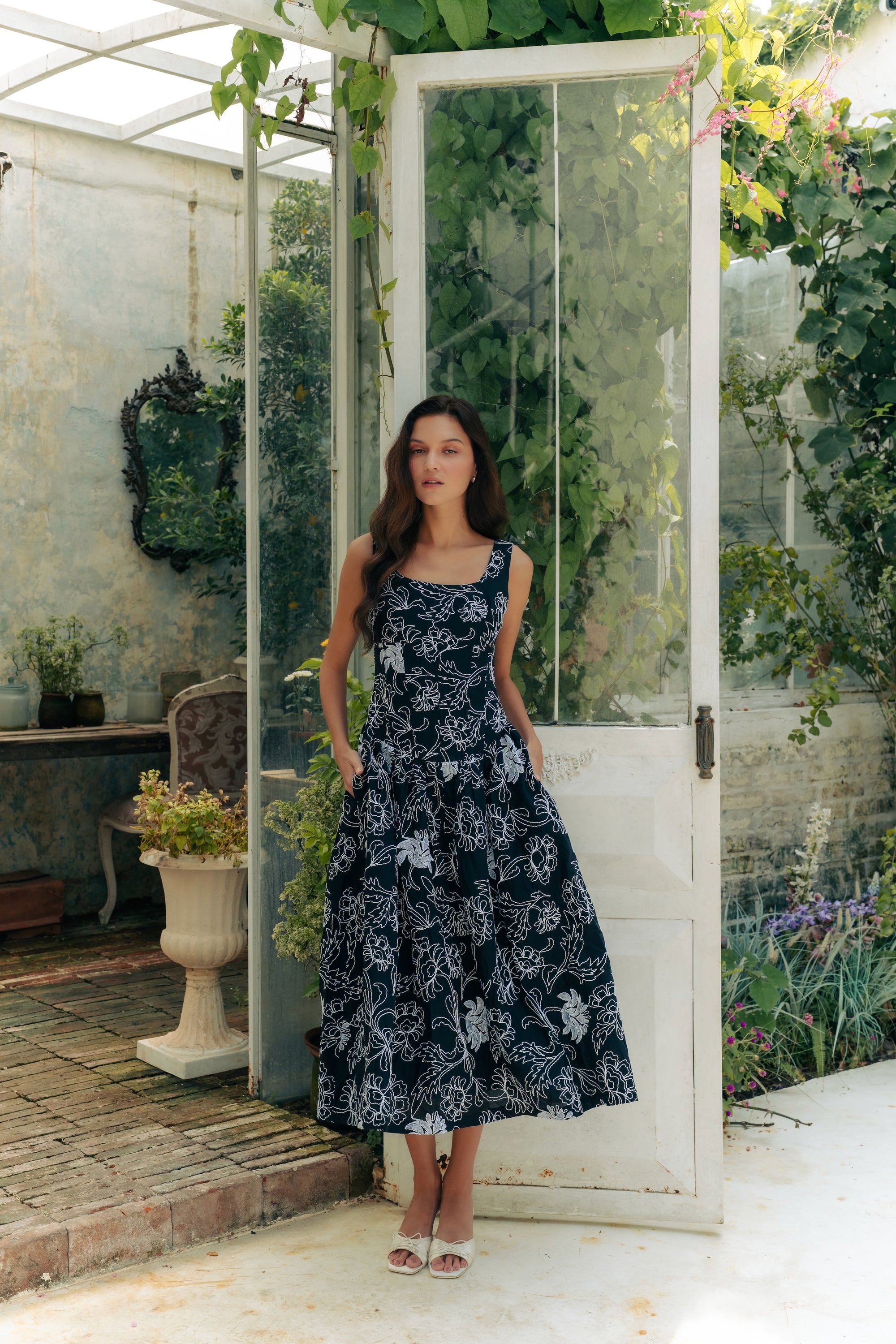 Jayne Retro Cheongsam - Teal / Moonlit Florals
