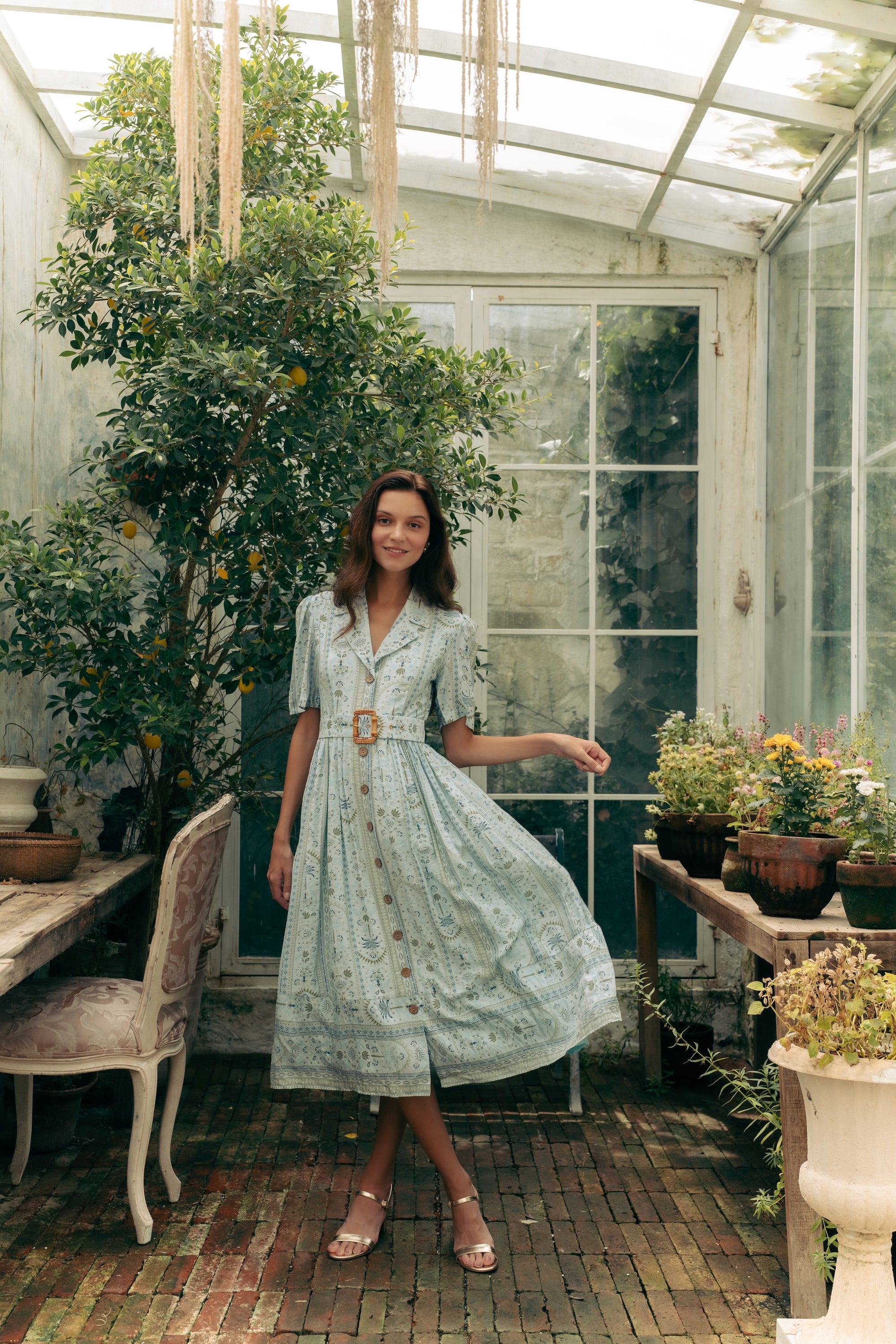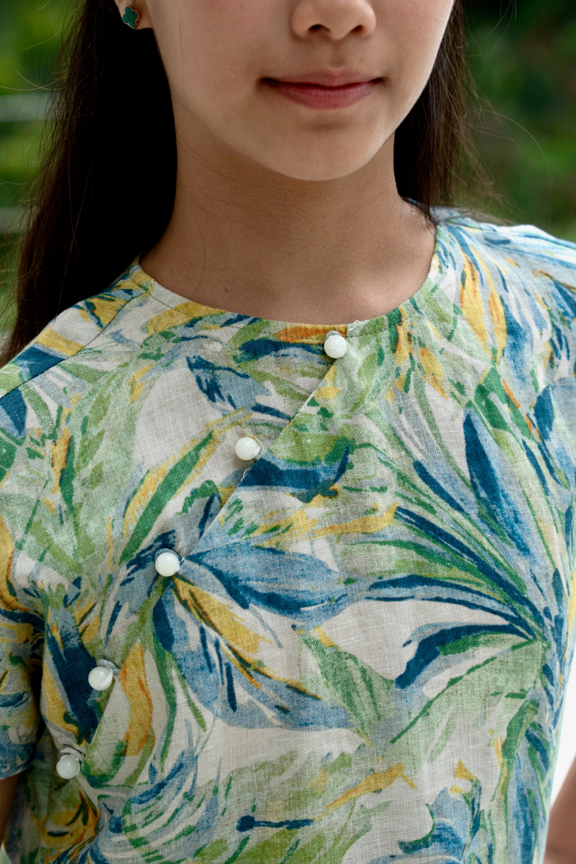 Lil' Theia Tie Shift Cheongsam - Ribbons / Green & Pink Toile