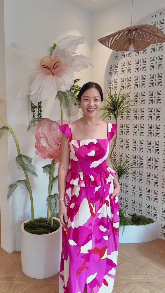 This set is one versatile combo that is not only fun and cheerful, but is also so flattering. With a sweet peplum top that includes a thicker waistband to define your waist and a small frill peplum to hide any buffet bulge, it's sweet frill sleeves also hide the sides of the arms while still keeping you cool. Wear the top with shorts or denims or with the matching maxi flared skirt, which on its own is also such a winner. The skirt pairs so well with just a plain white T-shirt or singlet and will easily take you from day to night in comfort.